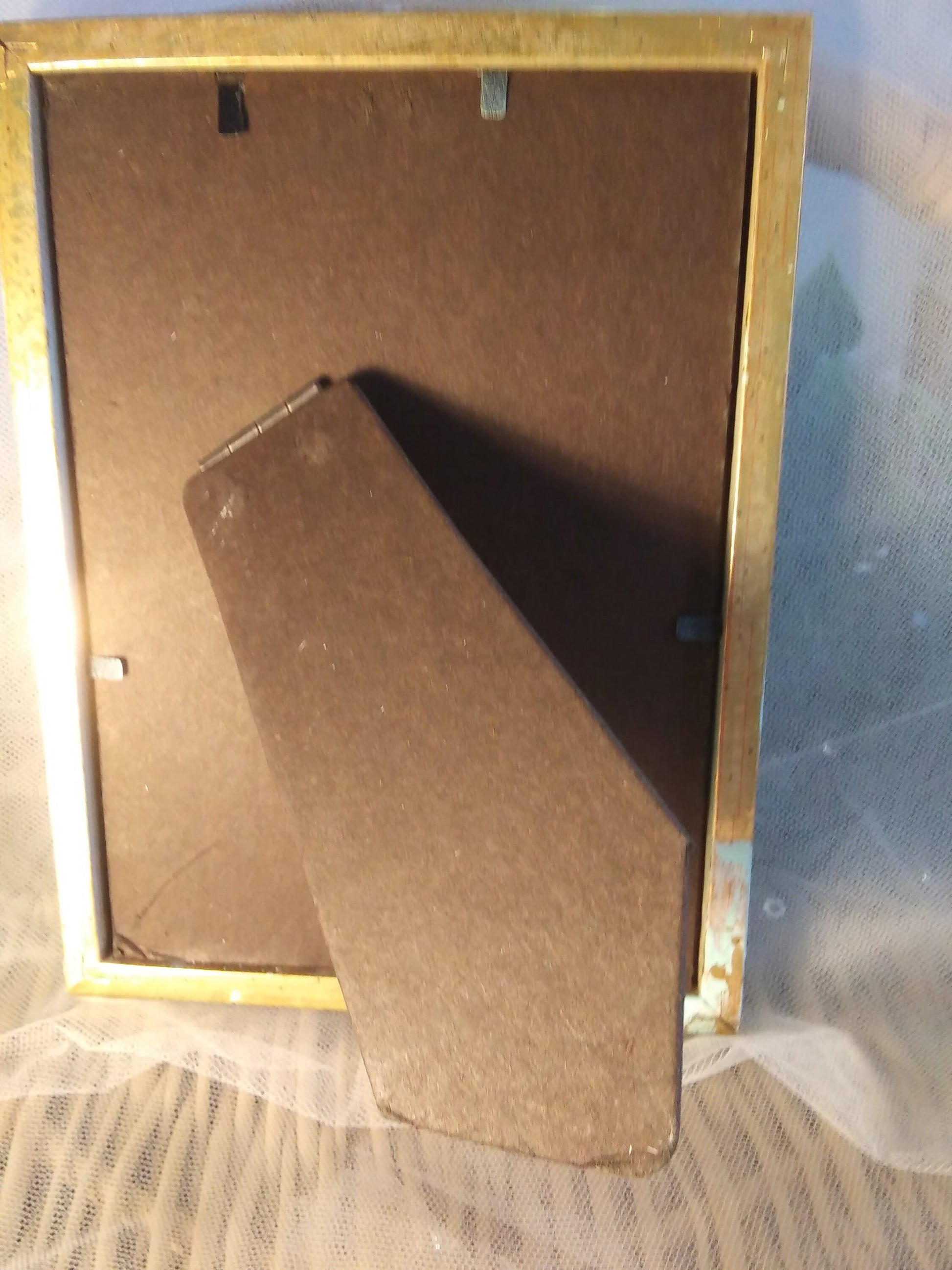 The handcrafted 5x7 wood frame has captured the beauty of the vintage art of this antique bedazzled postcard under glass for many many years of preservation.....
