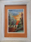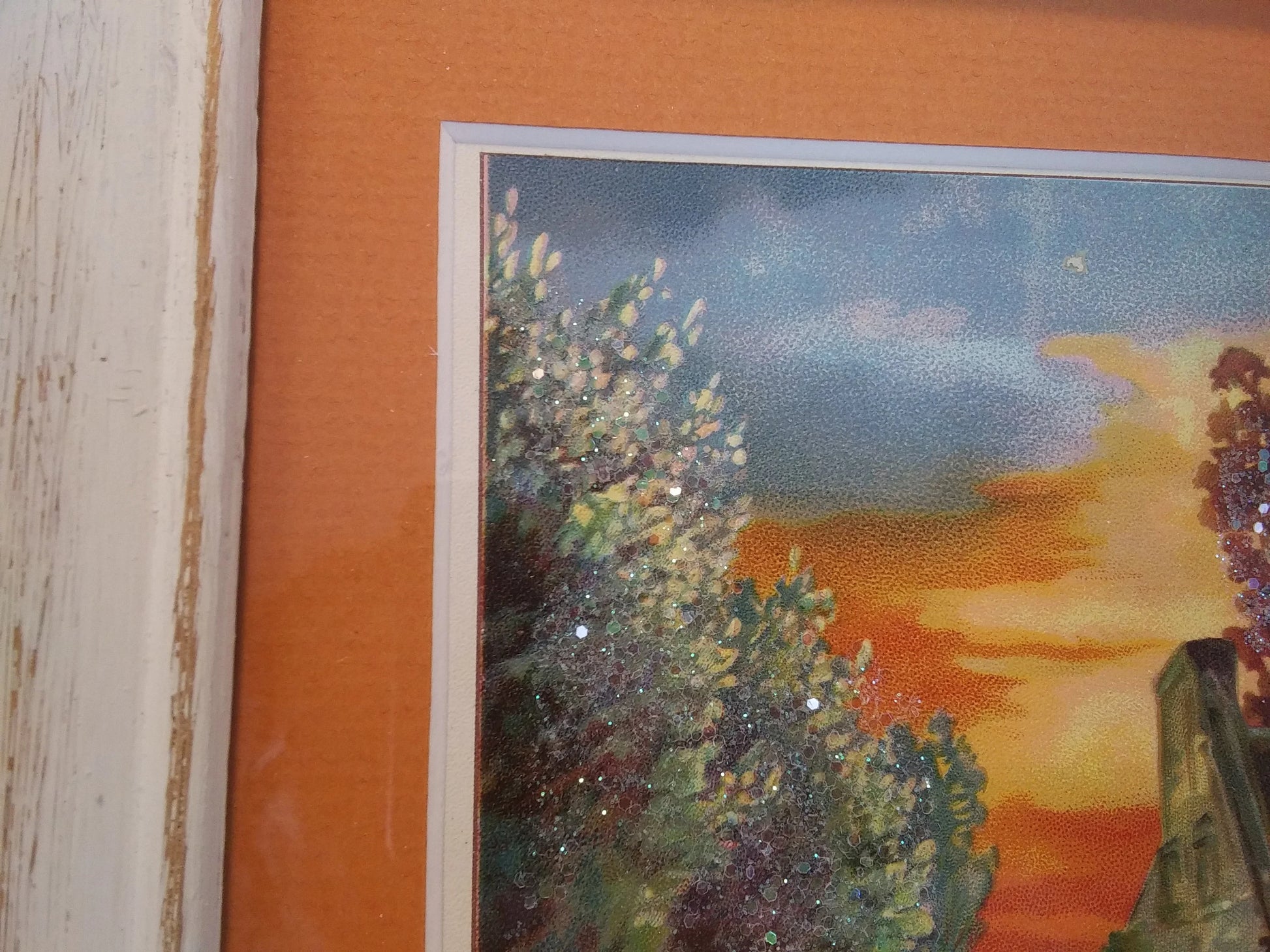 The handcrafted 5x7 frame has captured the beauty of the vintage art of this antique bedazzled postcard under glass for many many years of preservation.....