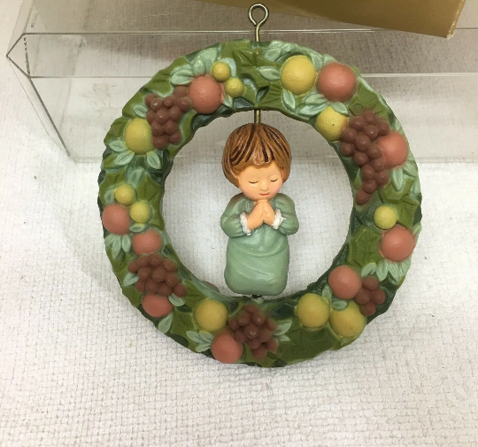 1977 Hallmark Twirl About Praying Little Girl. Della Robia Wreath Tree Trimmer Collection.