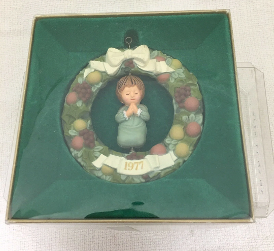 Ornament is in good shape and would make a great addition to any tree! The praying child angel in the beautifully detailed wreath makes this ornament a true treasure. From 1977, you will love this ornament on your tree. Get yours today!