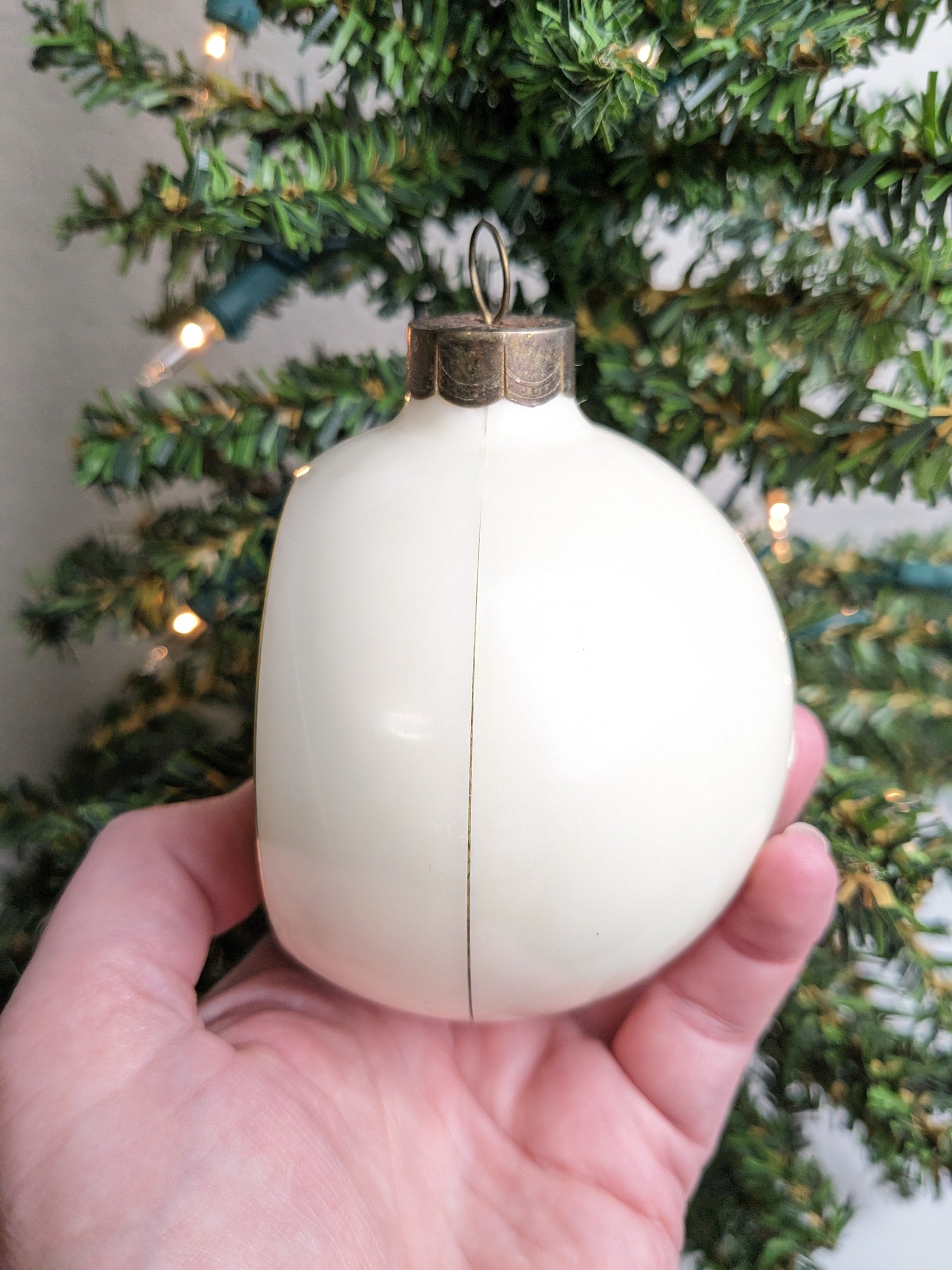 It is in great vintage condition with scratches to the clear dome and age-related wear, no chips or cracks. Please see all pictures. Wonderful addition to your vintage Christmas ornament collection. Measuring 3 1/4".