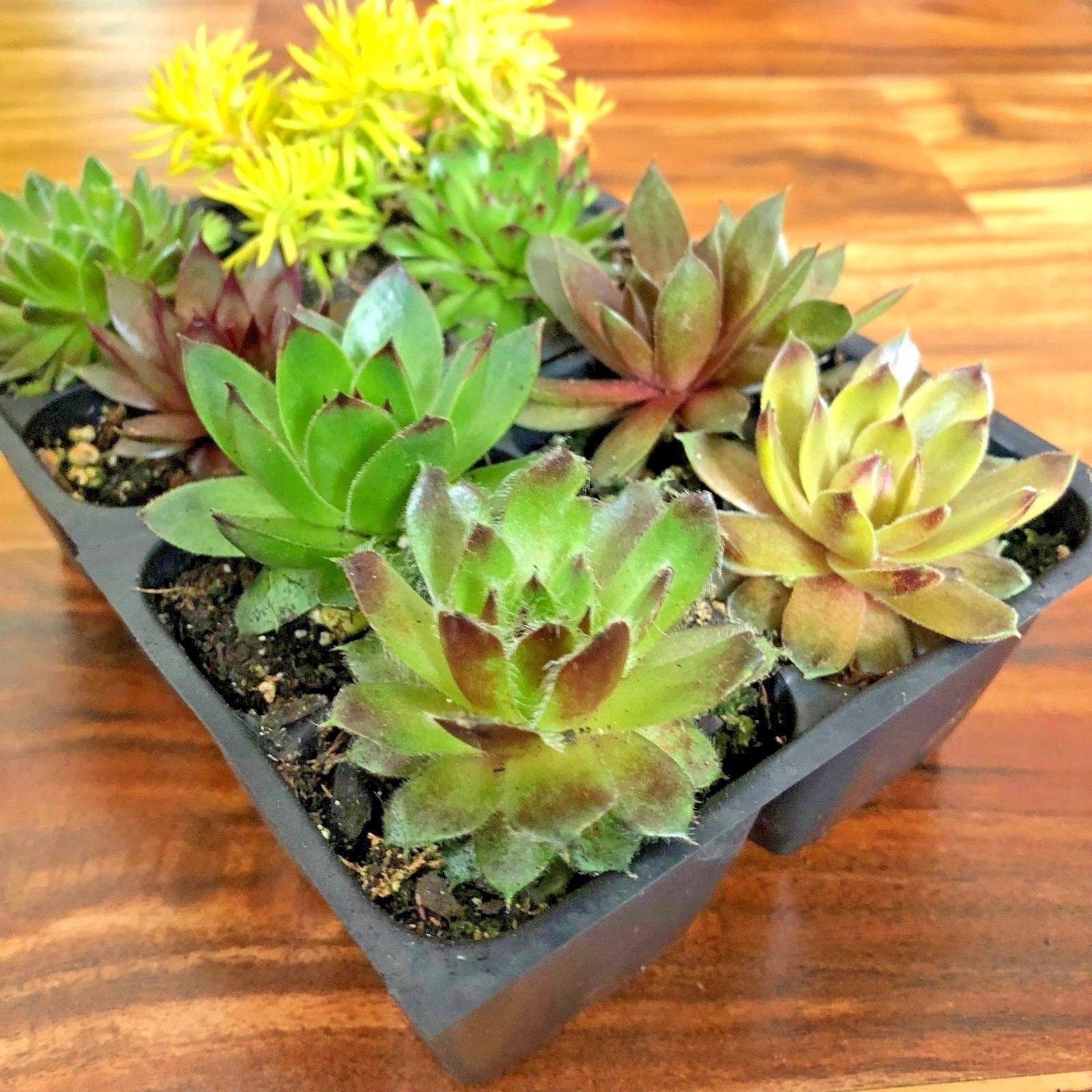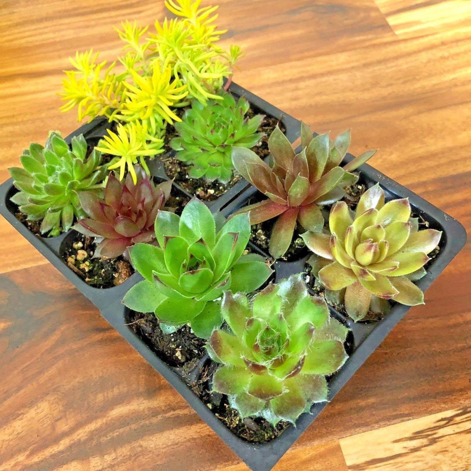 You will receive 8 different plants. We will handpick a beautiful succulent selection for you. They are well rooted in and are very healthy. Will be slightly different from picture, but you will receive 8 different varieties. No two will be alike. This is a great way to get some healthy new varieties of well rooted sempervivums for a low cost. I literally have hundreds of flats of these.