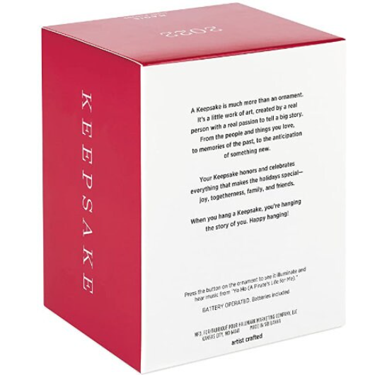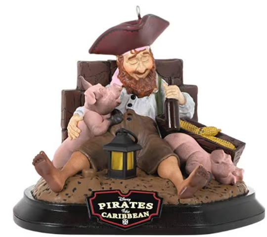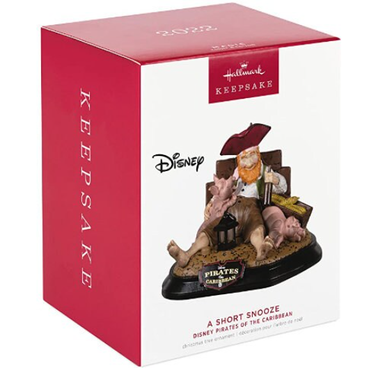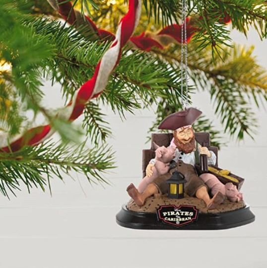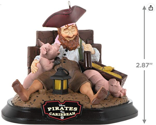 Give the Pirates of the Caribbean A Short Snooze Keepsake Christmas ornament to yer best matey or fan of the Disney Parks ride. Press the button on the Magic Light and Sound ornament to see the lantern illuminate and hear music from "Yo Ho (A Pirate's Life for Me)." Plastic Christmas tree ornament measures approximately 3.68 x 2.87 x 2.7