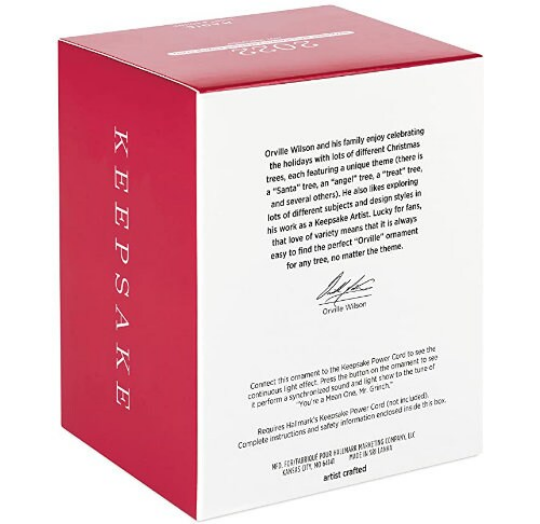 Connect the Magic Light and Sound ornament to Hallmark's Keepsake Power Cord (sold separately) to see the continuous light effect. Press the button to see it perform a synchronized sound and light show to the tune of "You're a Mean One, Mr. Grinch."