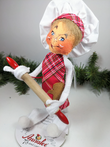 New ANNALEE Sugar Spice Chef Elf Christmas Doll. She is absolutely adorable. Dressed in a plaid apron, chef's hat and holding a rolling pin she is ready for baking Santa's cookies. Wonderful detail right down to the gingerbread accent on her apron, so cute! Perfect for the chef or baker in your life. She has posable arms and legs so you can put her anywhere.