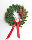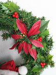 Vintage ANNALEE Santa Claus Christmas Wreath. This is darling and perfect for your holiday season. Green wreath with an Annalee Santa head and red bow with poinsettia and holly accents, very pretty! It is in great condition.
