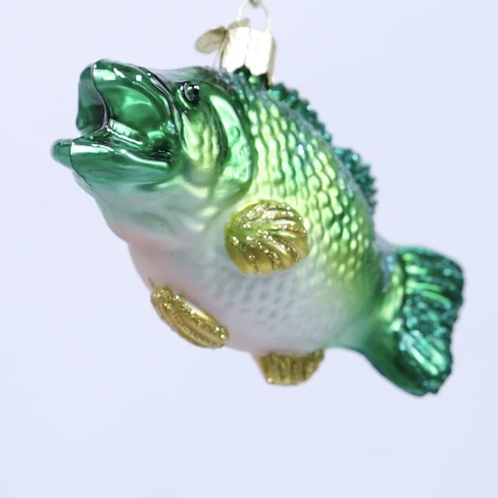 Large Mouth Bass Fish Blown Glass Hanging Tree Ornament by Old World Christmas