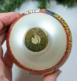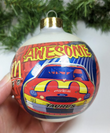 What a great find! Full of great graphics and color. Perfect for the NASCAR fan in your life. It is in excellent condition with no chips or cracks. Would look great on any Christmas tree or wreath. Wonderful addition to your vintage Christmas ornament collection.