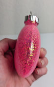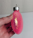 These stunning ornaments are brand new and freshly made. Please see pictures. Measuring 3". They would look fantastic on any Christmas tree or wreath. Wonderful addition to your Christmas ornament collection. Hurry, we only have 1 set in stock. Pink is a very popular color for Christmas ornaments.