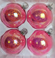Vintage Set of 4 large Bubble Gum Pink Glass Ball Christmas Ornaments. These are absolutely gorgeous. Great gift for the pink lover in your life. Covered inside with a gorgeous pink glitter they are made to sparkle.