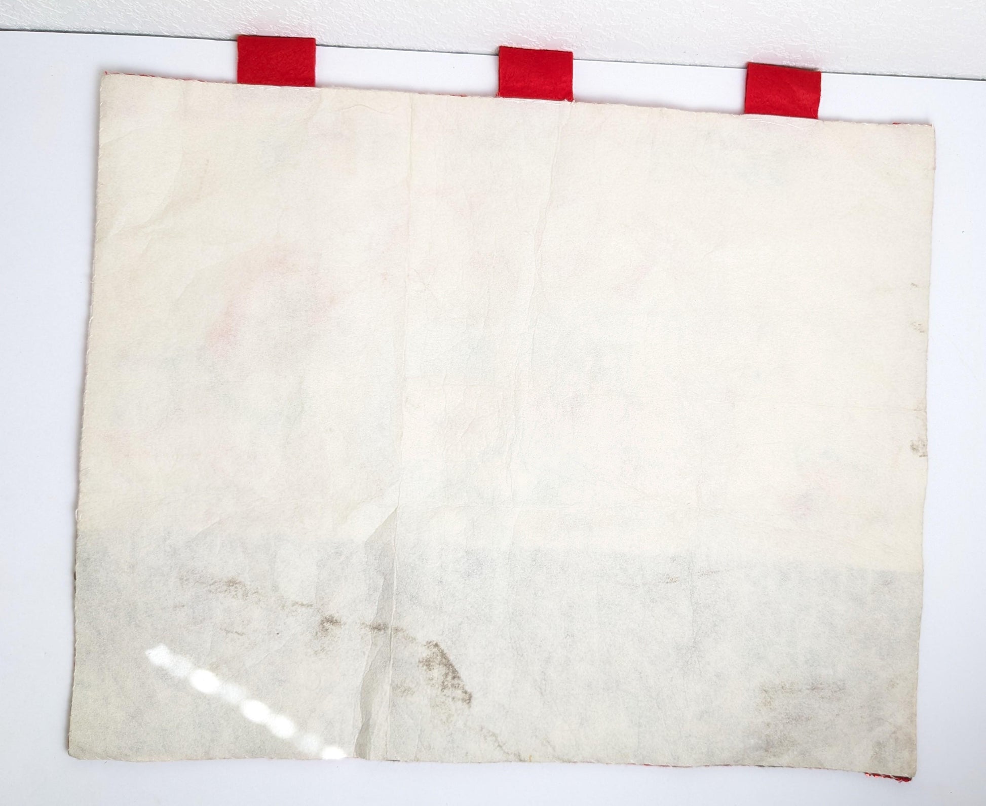 Gorgeous details and color in this wall hanging. Featuring 3 children looking in the window of a toys store. Just stunning and perfect for your holiday. This is a finished piece made from a Christmas felt kit (possibly Bucilla). Measuring 17" x 21 3/4". Perfect gift for the vintage Christmas fan in your life. It is in great condition. Reminds me of a simpler time and is a fantastic piece of retro Christmas past.