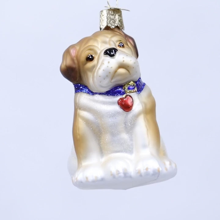 Bull Pup Bulldog Blown Glass Dog Tree Ornament by Old World Christmas