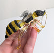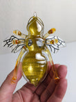 Dress up your Christmas tree with unique and bee-utiful accents like this Honey Bee Ornament. This glass ornament features a sparkly yellow and black stripped bee with transparent black veined wings, just gorgeous. He has golden yellow legs with a ribbed belly. Give this lovely buzzing friend a home by hanging this ornament up this Christmas!