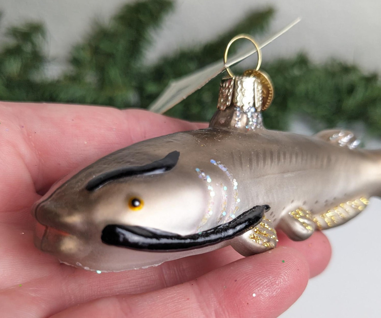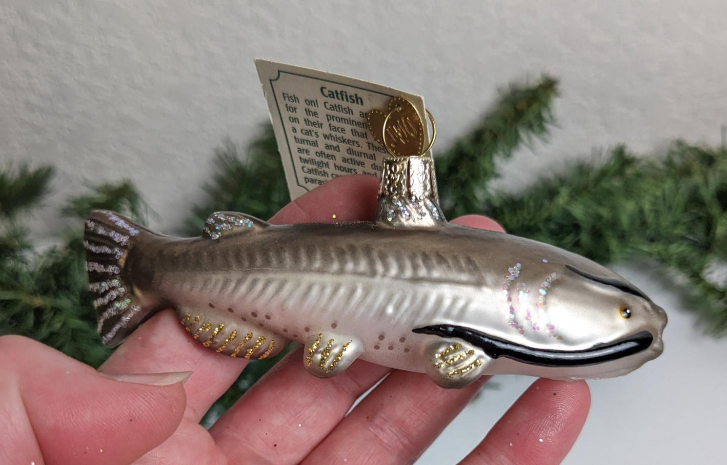 New Retired 2019 Old World Christmas Catfish Glass Christmas Ornament. What a rare find and absolutely beautiful with wonderful detail, color and sparkle. Makes a great hostess or heirloom gift. Wonderful addition to your Christmas ornament collection. This is a RETIRED old World Christmas ornament, and they are very hard to find anymore.