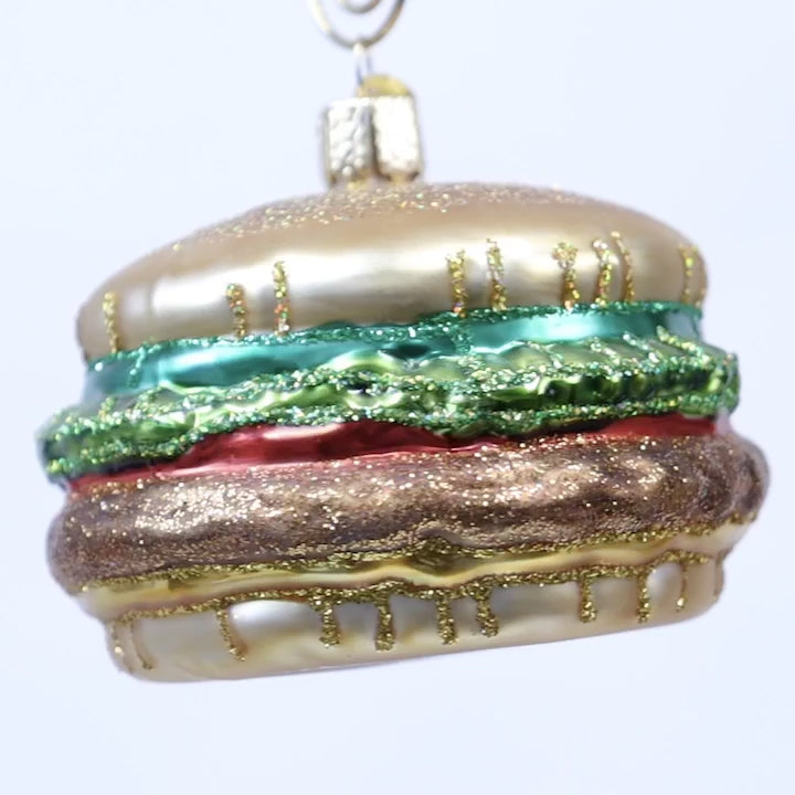 Cheeseburger Fast Food Blown Glass Tree Ornament by Old World Christmas Hamburger