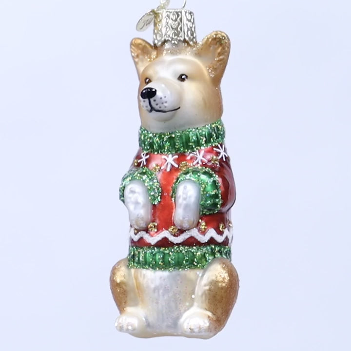 Christmas Corgi in Holiday Sweater - Blown Glass Tree Ornament by Old World Christmas