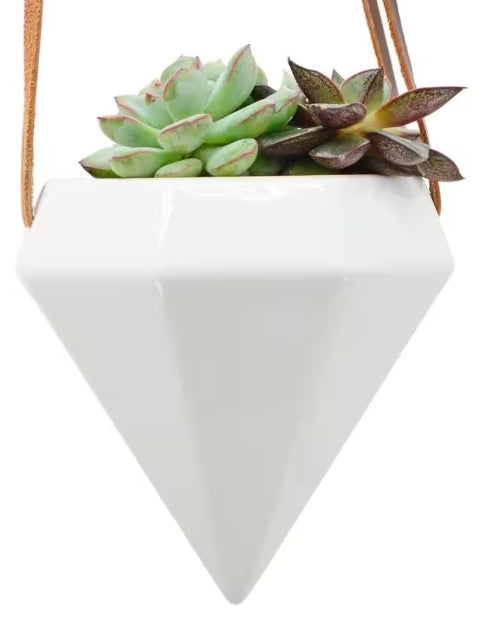 Add a touch of elegance to your indoor or outdoor decor with the diamond shaped Ceramic Hanging Planter - PLANT NOT INCLUDED