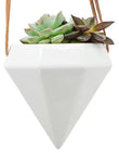 Diamond Shaped Ceramic Hanging Planter - White- by Arcadia Gardening Products 4.5" tall