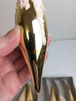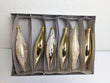 Vintage Large Set of 6 Gold Fluted Icicle Glass Christmas Ornaments. These are absolutely gorgeous. Measuring 6" long they are perfect for your holiday tree.