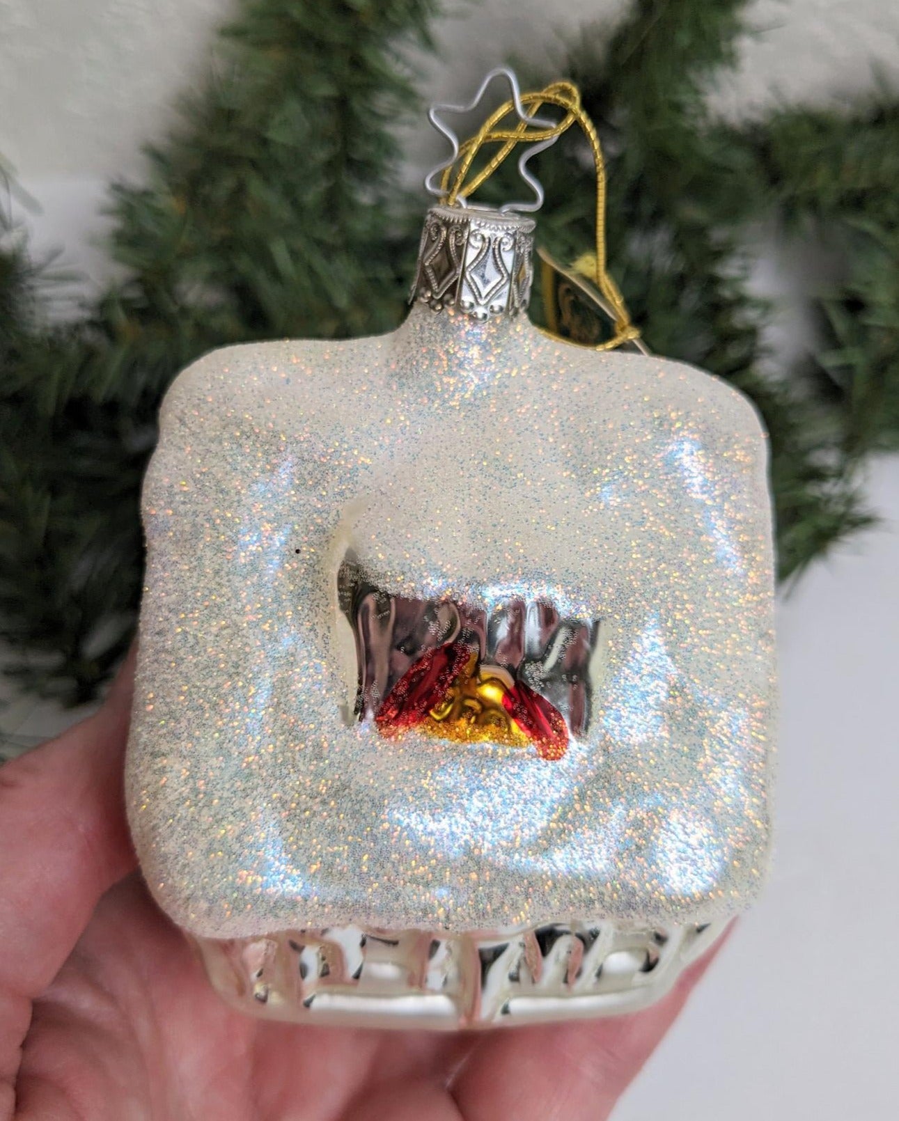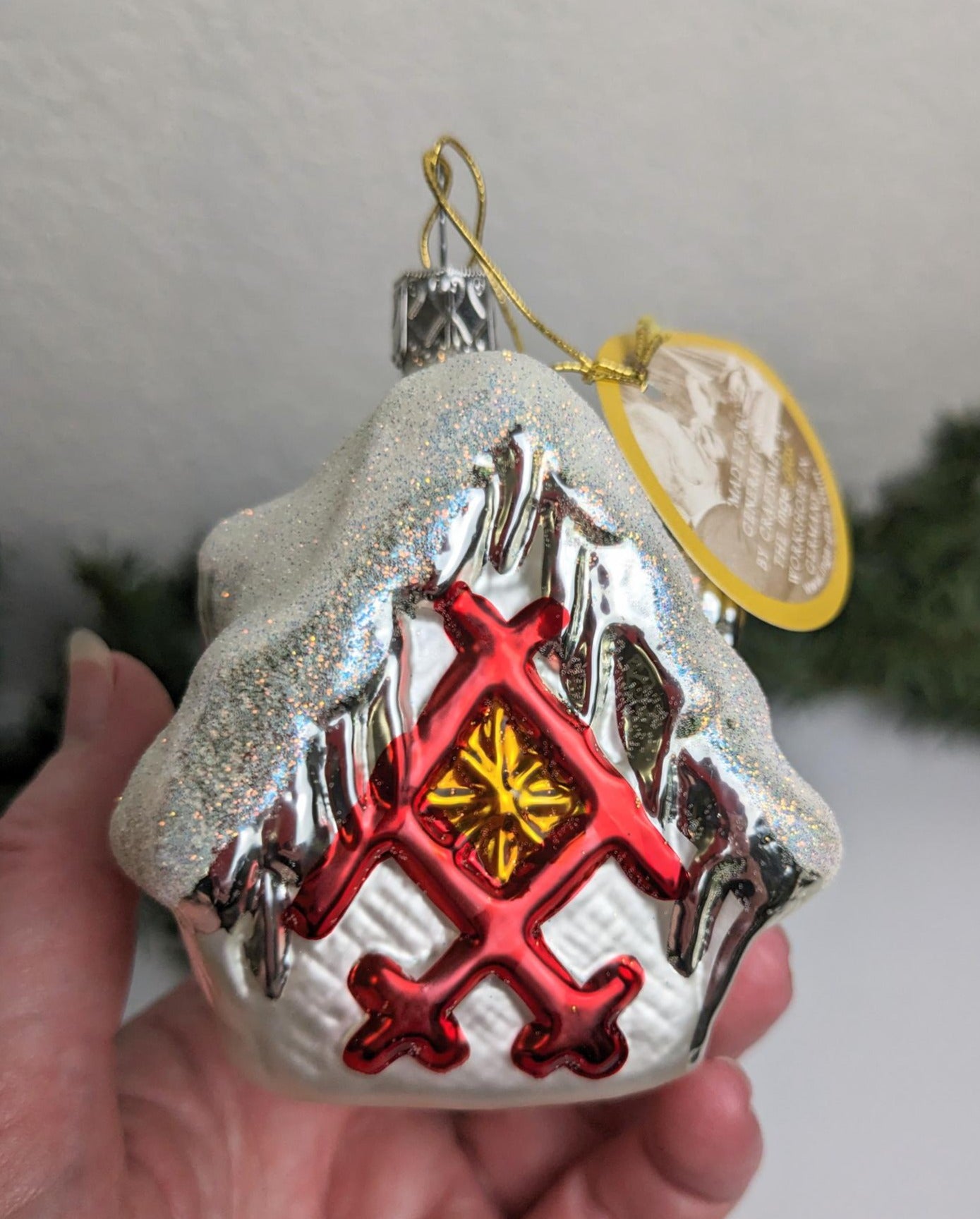 Gorgeous Cottage Glass Christmas Ornament made by Inge-Glas in West Germany. What a rare find and absolutely beautiful. It is in great vintage condition, please see all pictures. Perfect for your retro Christmas. Wonderful addition to your vintage Christmas ornament collection. Measuring 3 1/2".