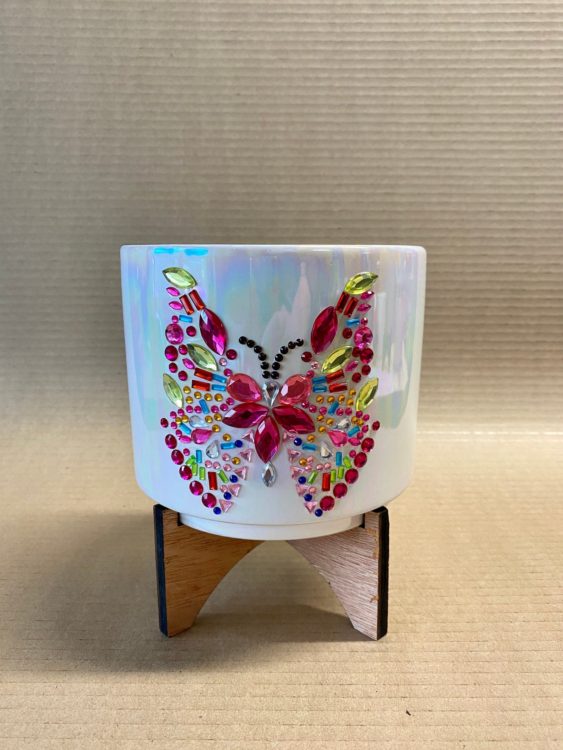 **Please make sure to indicate what color stand you would like in the style options. You will also need to choose what color planter you would like with the crystal butterfly design and choose if you would like to receive a tender succulent of our choosing with your order (only $12.00 extra!)**