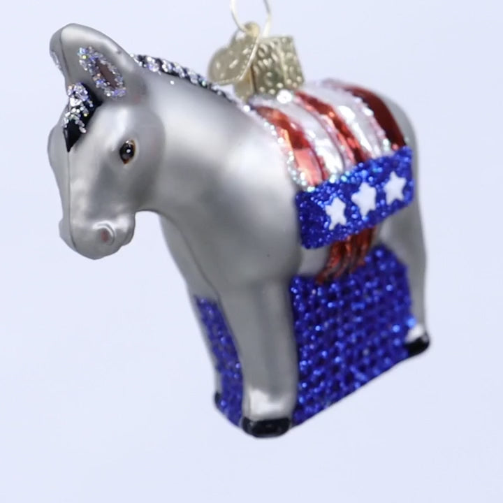 Democrat Donkey Red White Blue American Flag Colors - Glass Tree Ornament by Old World Christmas