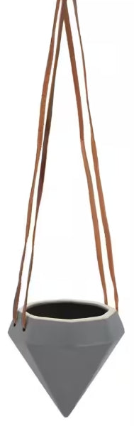 Diamond Shaped Ceramic Hanging Planter - Dark Gray- by Arcadia Gardening Products 4.5" tall
