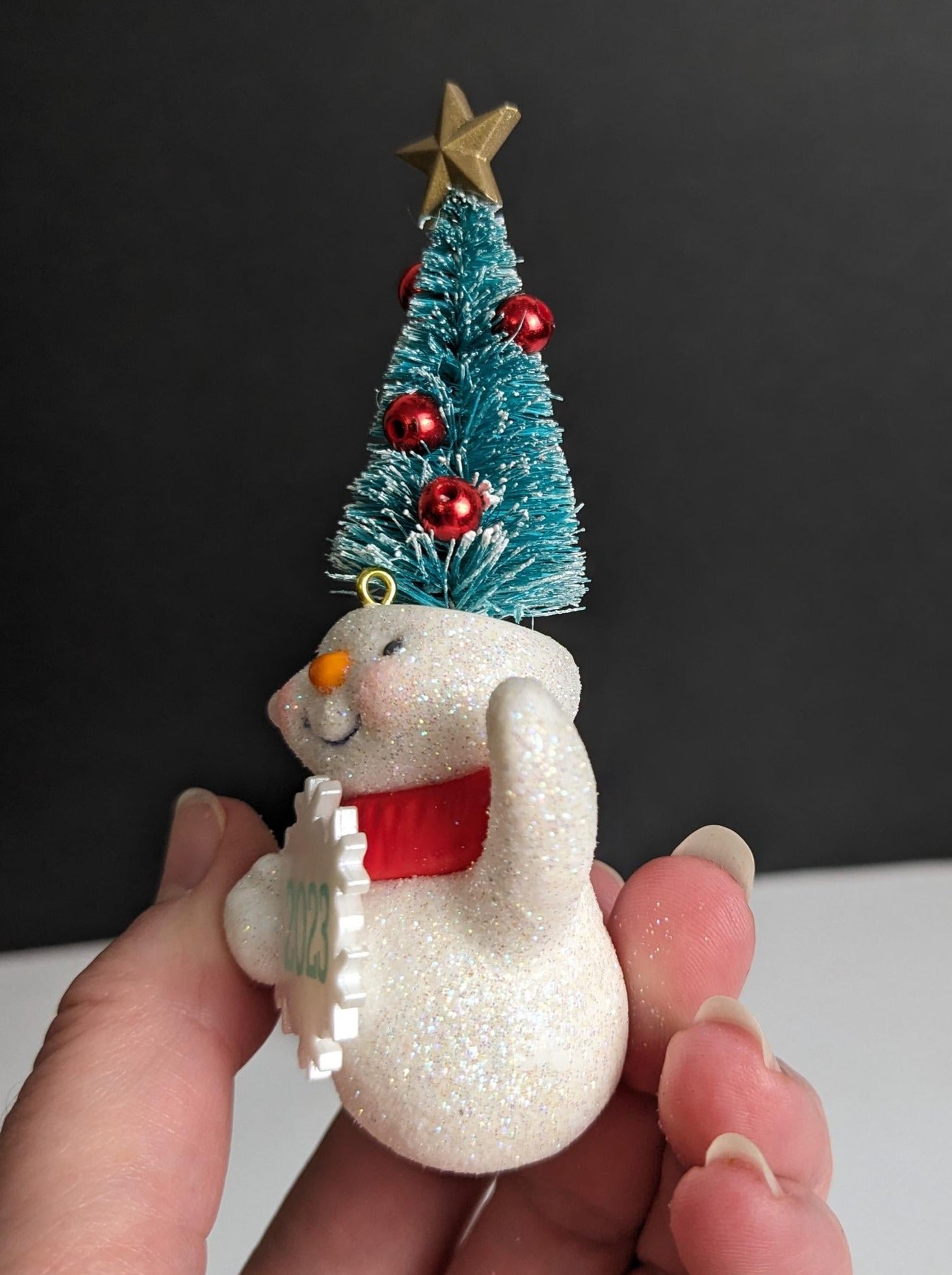 Featuring a darling sparkly snowman holding a snowflake that reads 2023 and