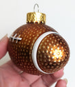 Football Glass Christmas Ornaments. What a great find! This football ornament has wonderful detail and texture. Perfect for your holiday season. It is in excellent condition.