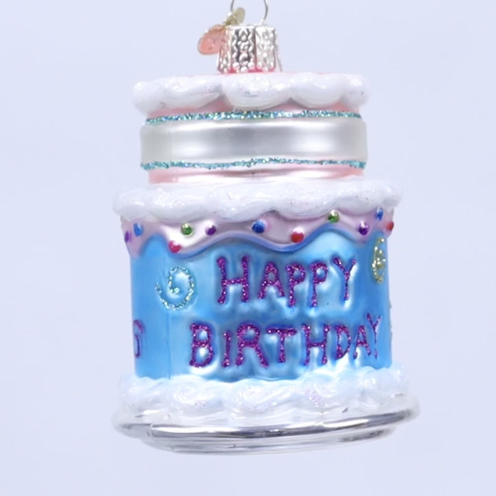 Happy Birthday Cake Blown Glass Hanging Tree Ornament by Old World Christmas