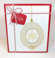 This is absolutely gorgeous. Done in a gorgeous white porcelain it has a gold toned snowflake hanging in the middle and it reads "Cheer" at the bottom, very pretty. Sure to catch anyone's eye as they walk by your tree. Perfect hostess gift!