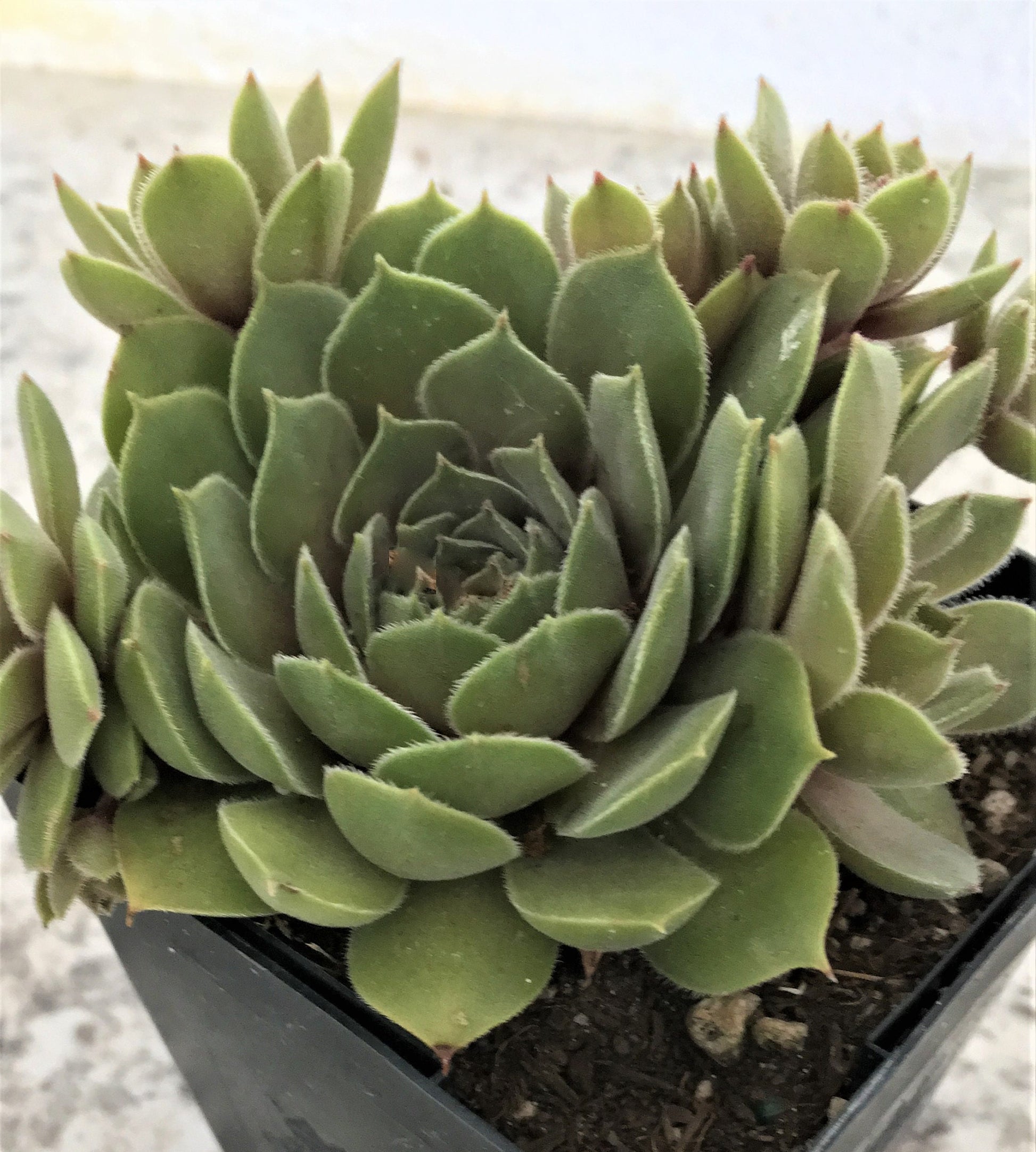 Historic garden plant with succulent foliage. Forms gray-green velvety rosettes tinged with lavender-rose. Rose color becomes more pronounced in winter. Hens Chicks grow best in well-drained gravelly soil that is not wet in winter. Drought tolerance. Requires little water once established. Great in containers and rock gardens.