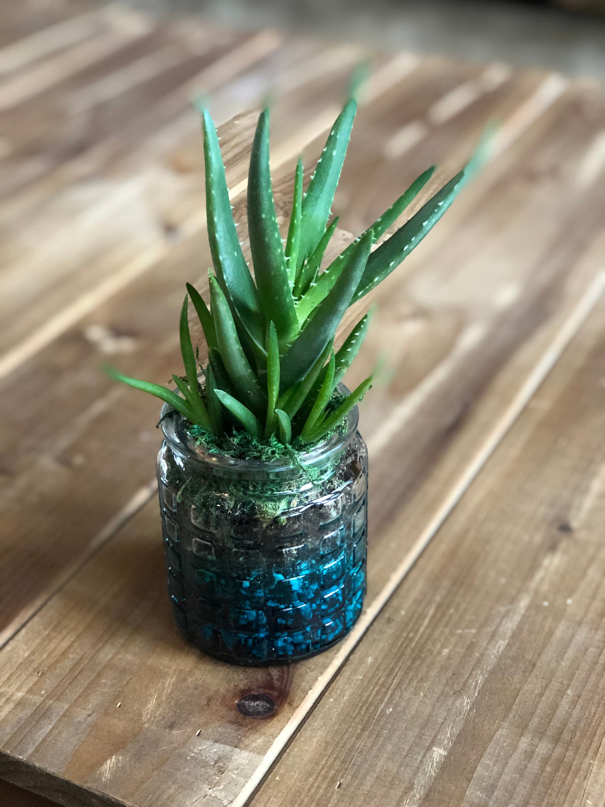 Live Succulent Container Planter Translucent turquoise Blue Clear Glass Waffle Pattern Container Succulent Gift Indoor Succulent Aloe Vera
