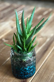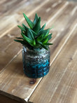Pretty premium succulent in enriched succulent soil in a clear and turquoise blue translucent waffle pattern glass container. 3" by 7" tall. Perfect for wedding and shower arrangements for favors and that perfect gift for girlfriends and Besties. Handmade with love and care and expertly packaged.