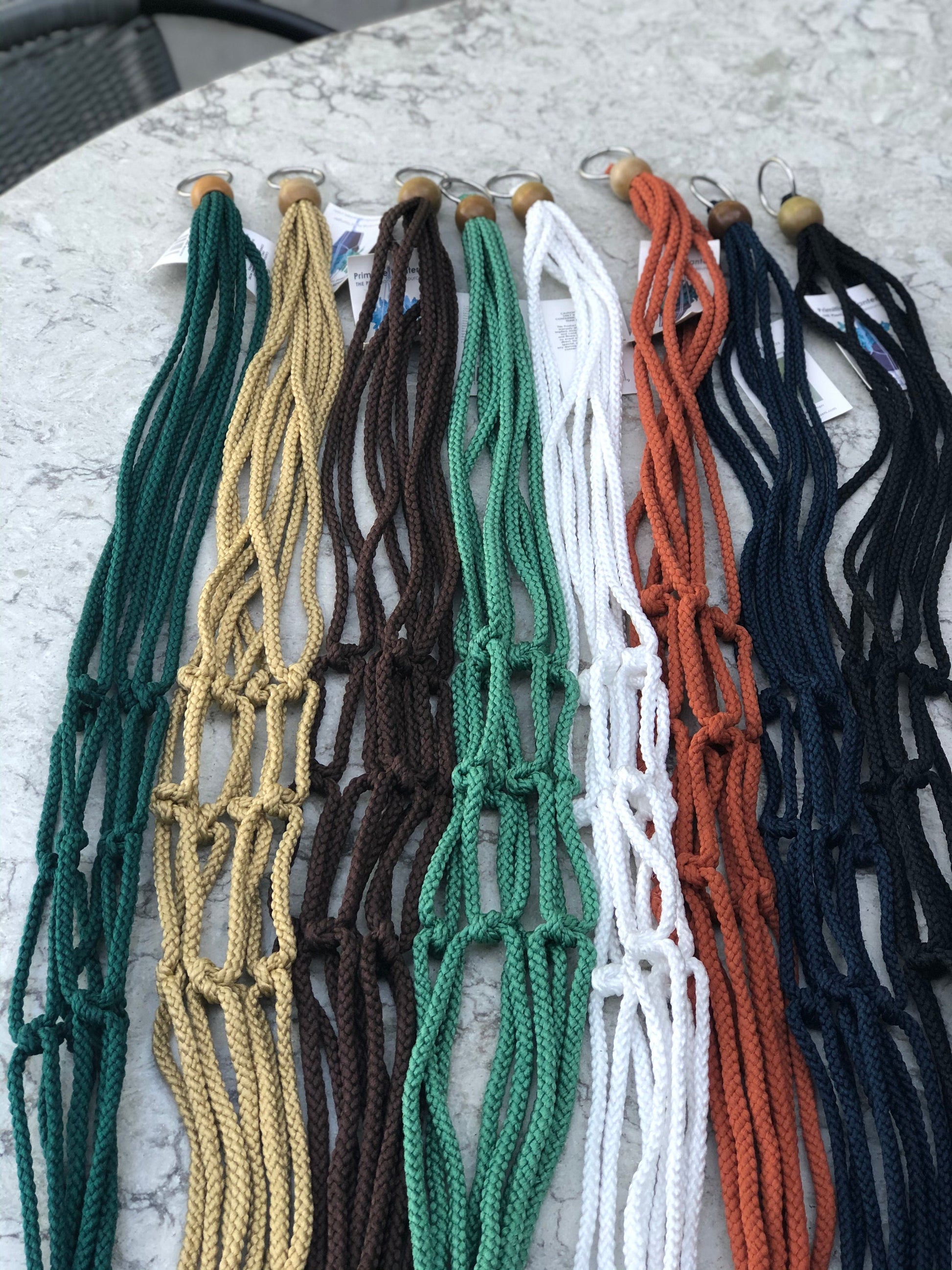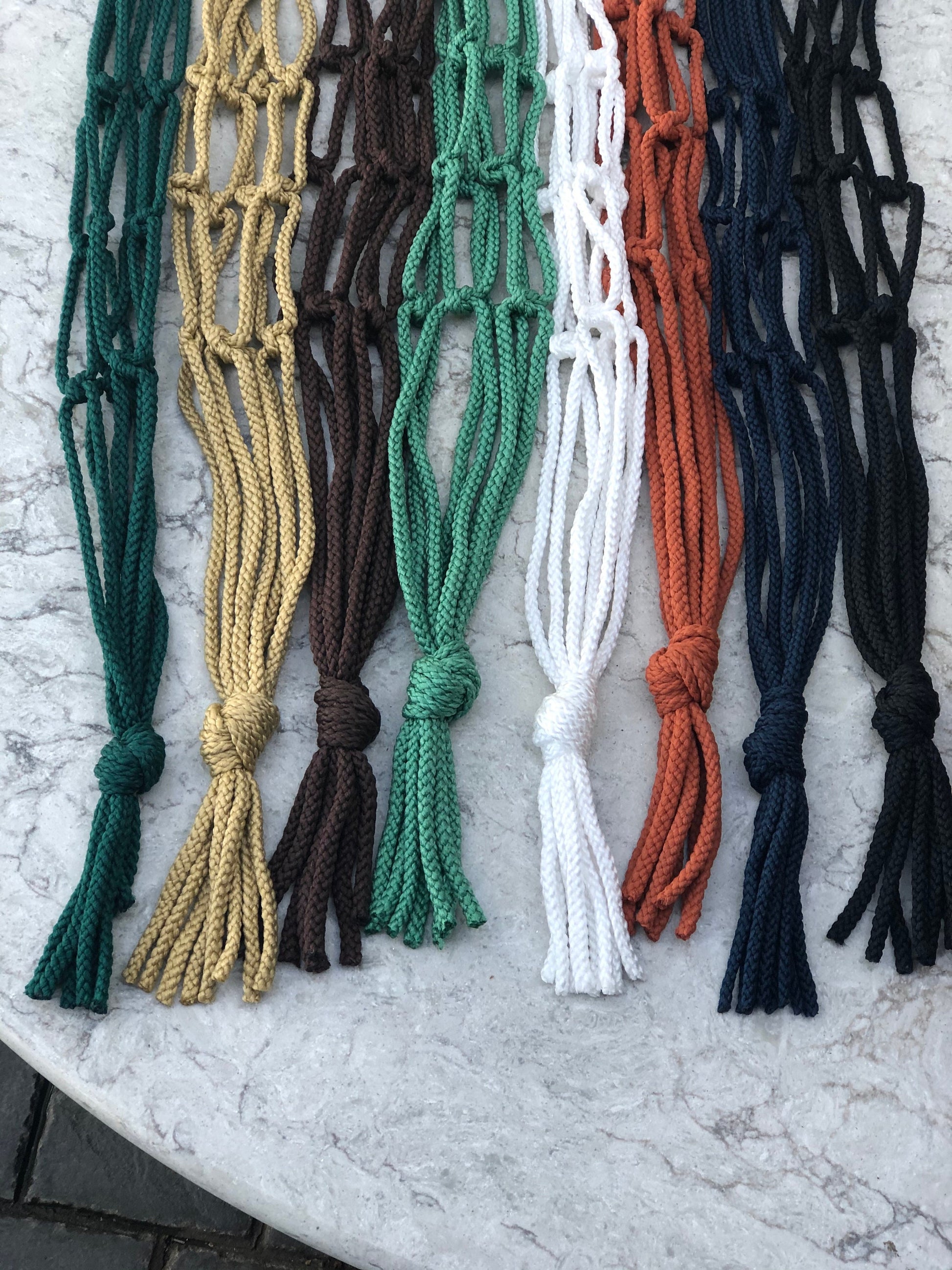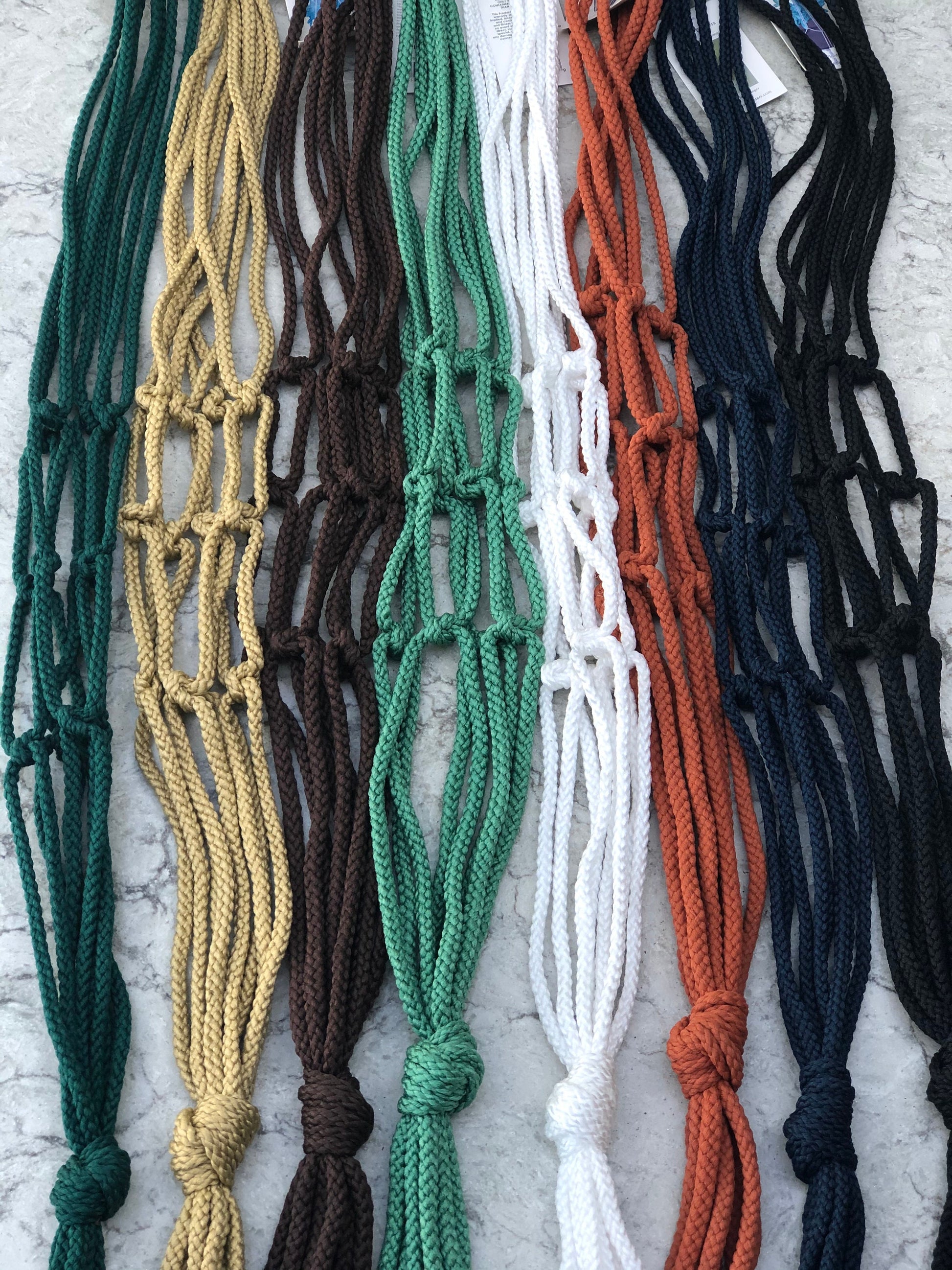 BOHO Macrame Plant Hanger in these colors: Dark Green, Light Brown, Dark Brown, Green, White, Rust, Dark Blue, and Black.