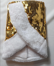 Beautiful tabletop gold Christmas tree skirt. This skirt is stunning in gold sequins and a faux fur cuff. The gorgeous tree skirt is new still on the hanger.