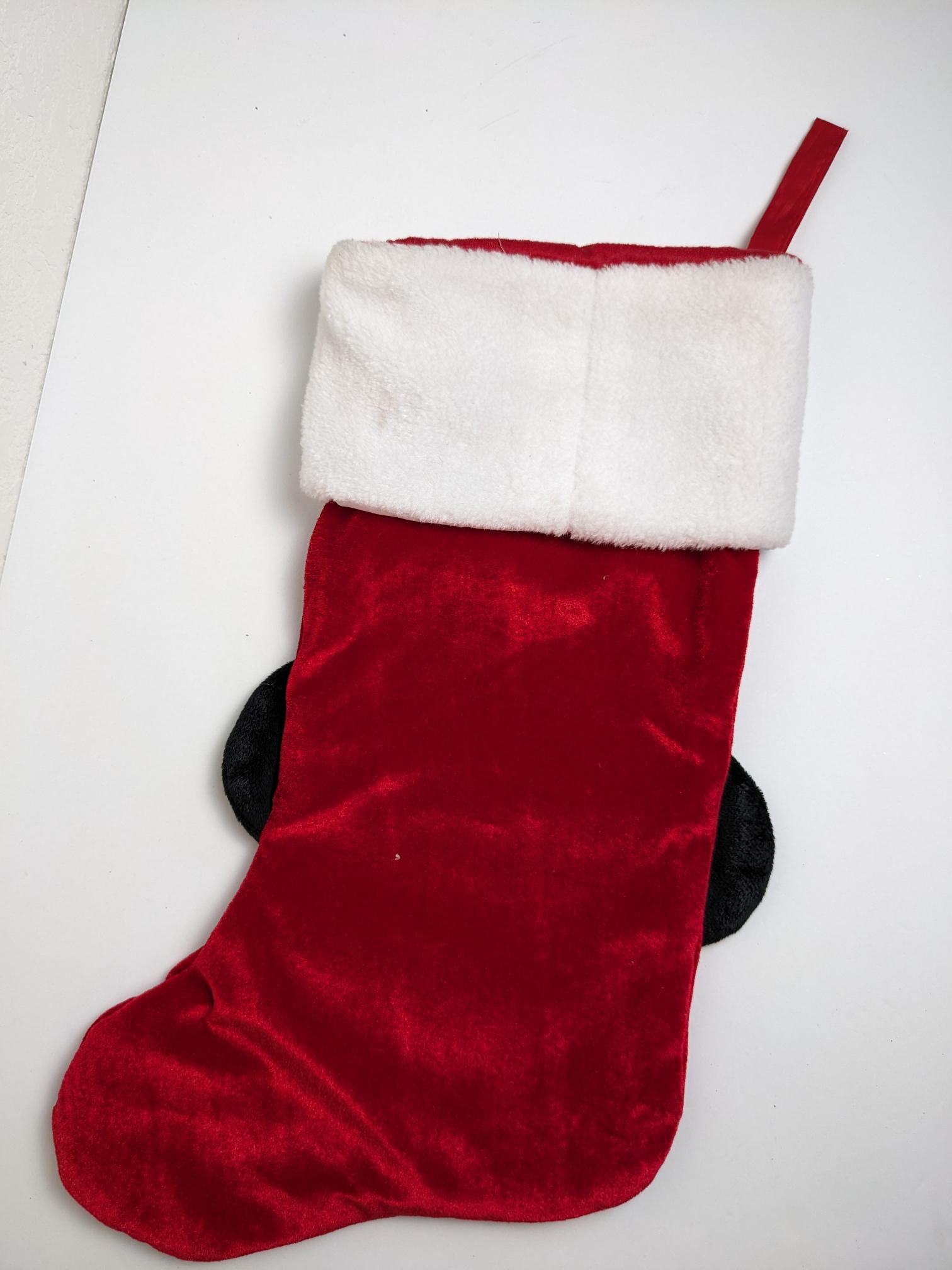 The back is solid red. Perfect for the Disney or Minnie Mouse fan in your life. It is in great condition. Would look fantastic on your Christmas mantel waiting to be filled by Santa. Hurry we only have 1 in stock.