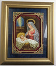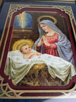This is a great classic framed vintage picture. Featuring Mary and Baby Jesus in the manger with light from the north star. This is so precious and perfect for your holiday table or mantel.