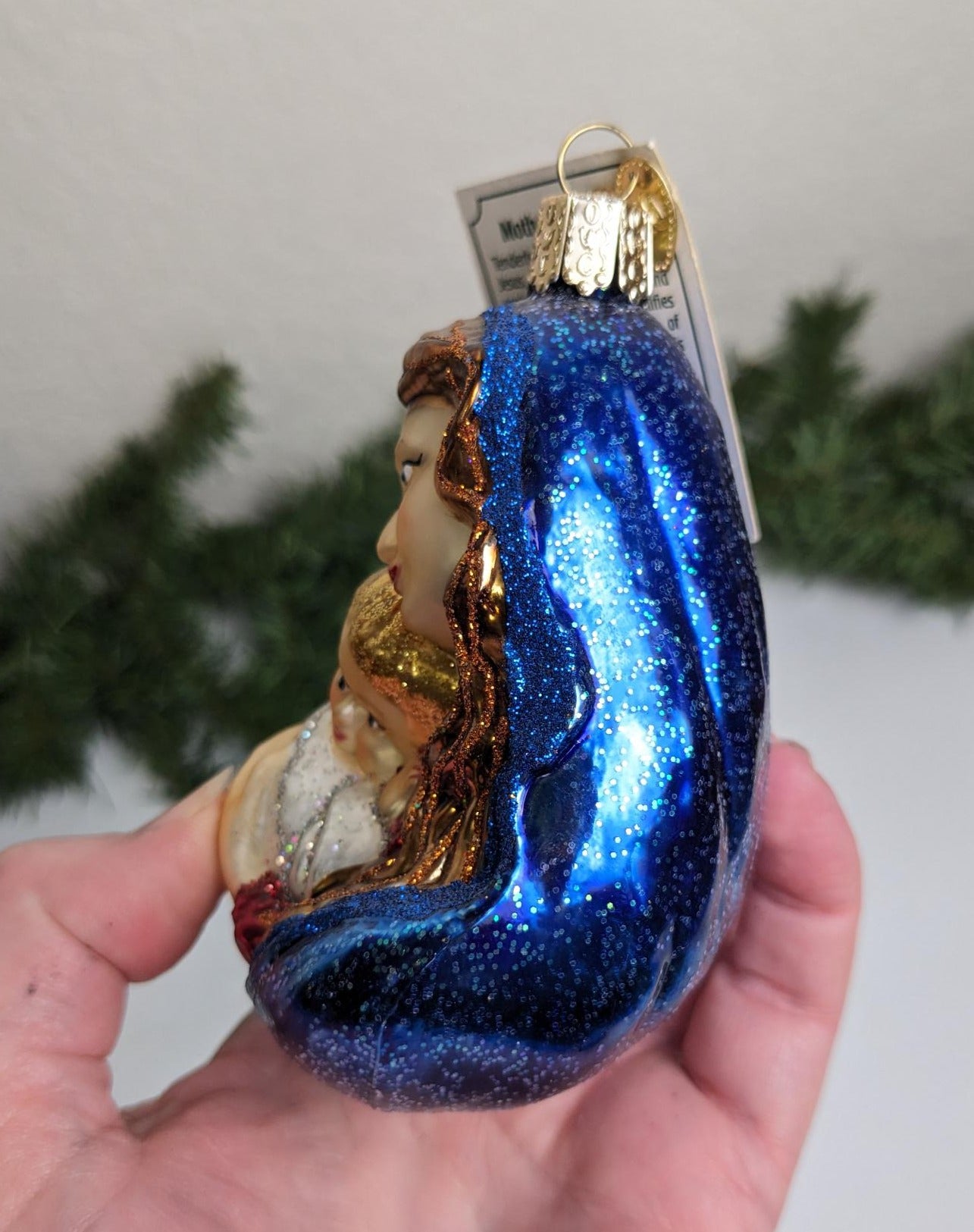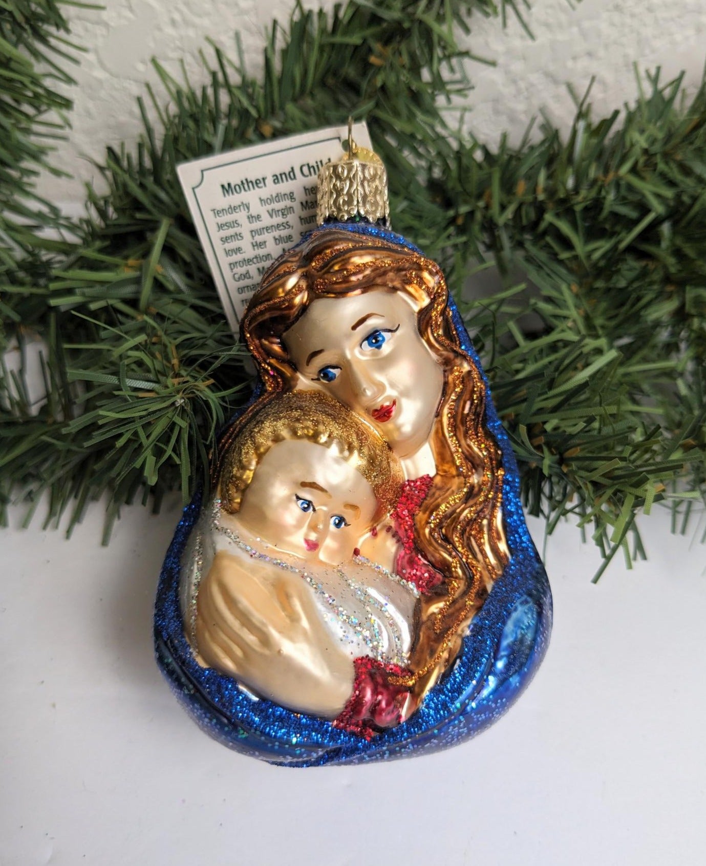 New Retired 2011 Old World Christmas Mother and Child Glass Christmas Ornament. What a rare find and absolutely beautiful with wonderful detail, color and sparkle. Makes a great hostess or heirloom gift. Wonderful addition to your Christmas ornament collection. Made Of Glass. Indoor Use Only.