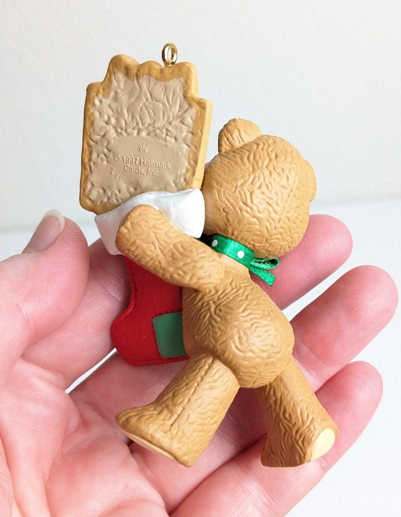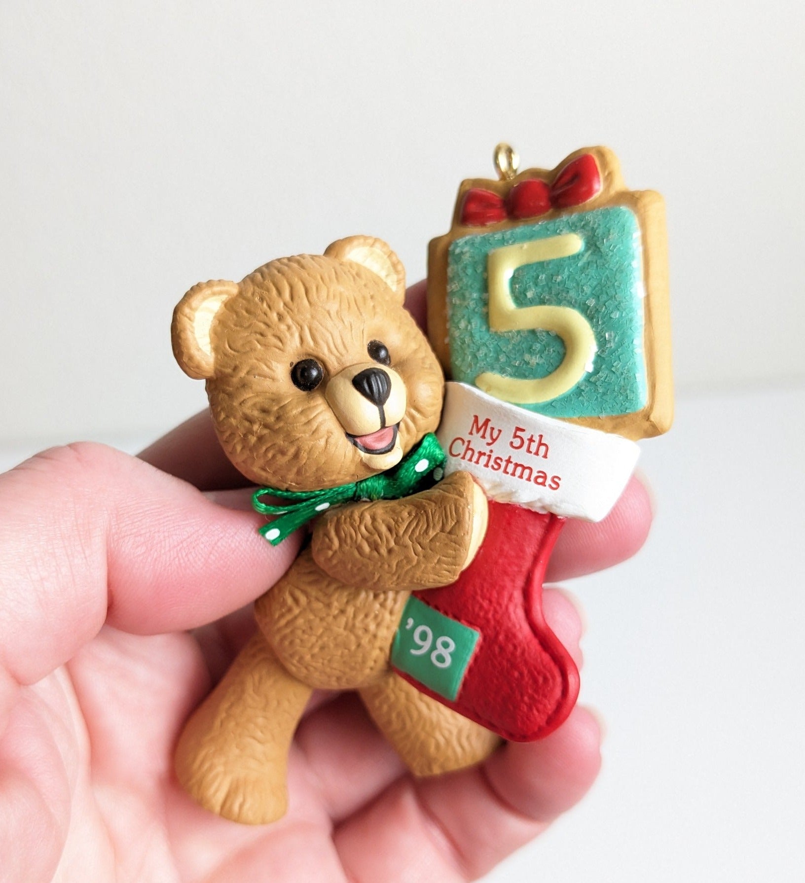 Teddy Bear Ornament with Stocking celebrating a child's 5th Christmas - Hallmark Keepsake Ornament 1998