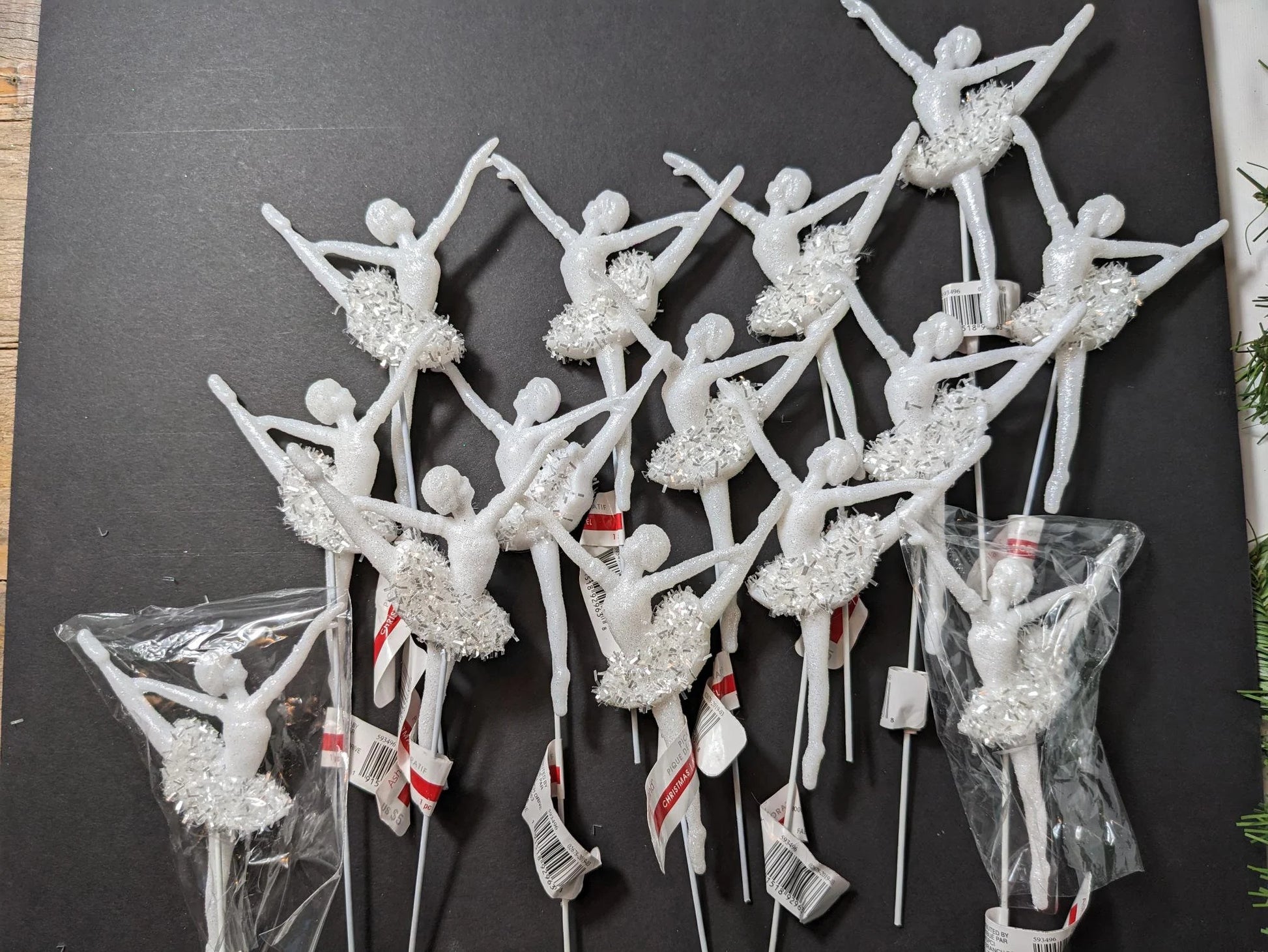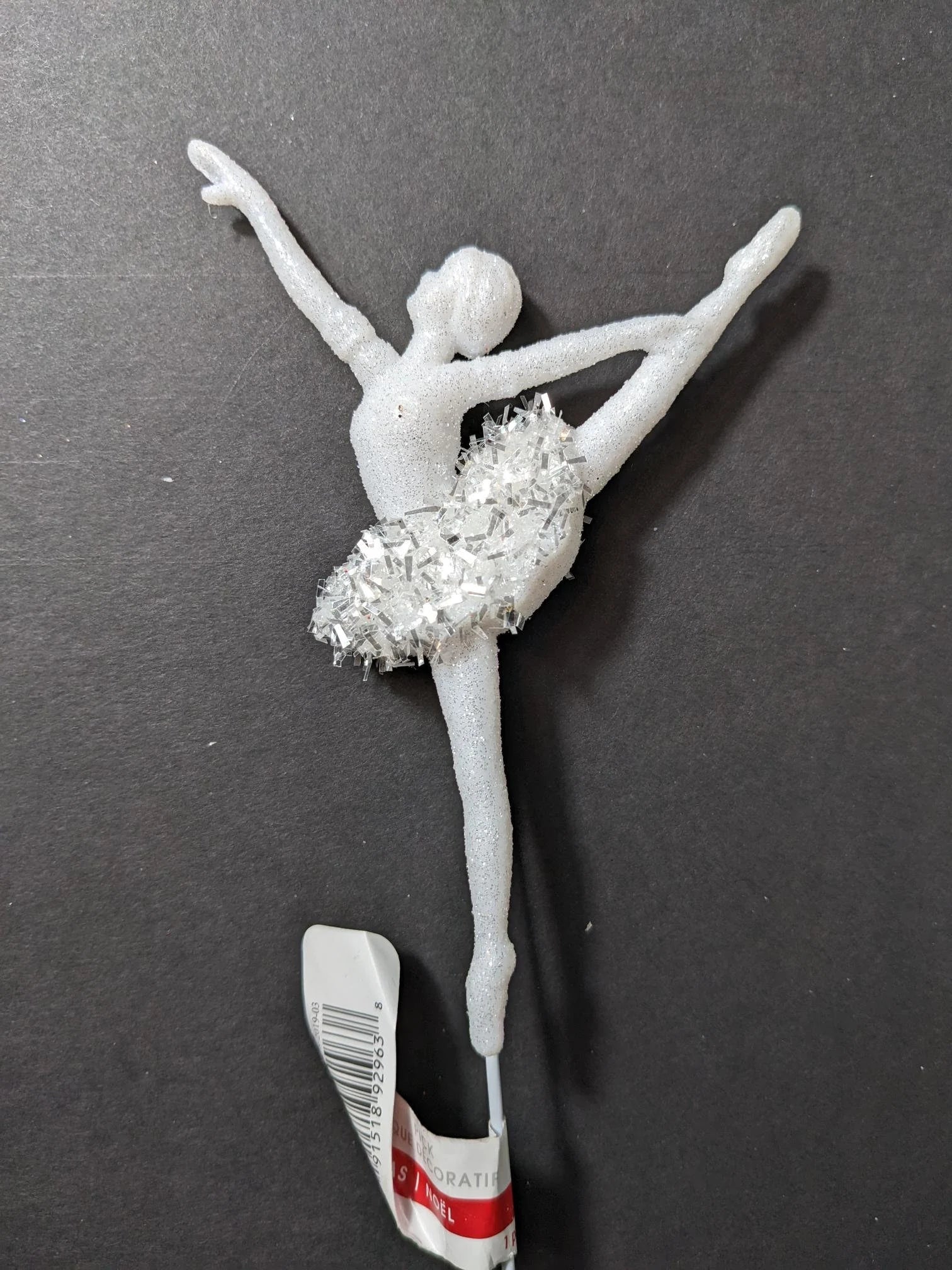 New Ashland Set of 14 White Glittery Ballerina Picks. These are absolutely gorgeous! Perfect accent to any holiday decorating. Will add a pop of color to any tree and the sparkles will catch the eyes of many.
