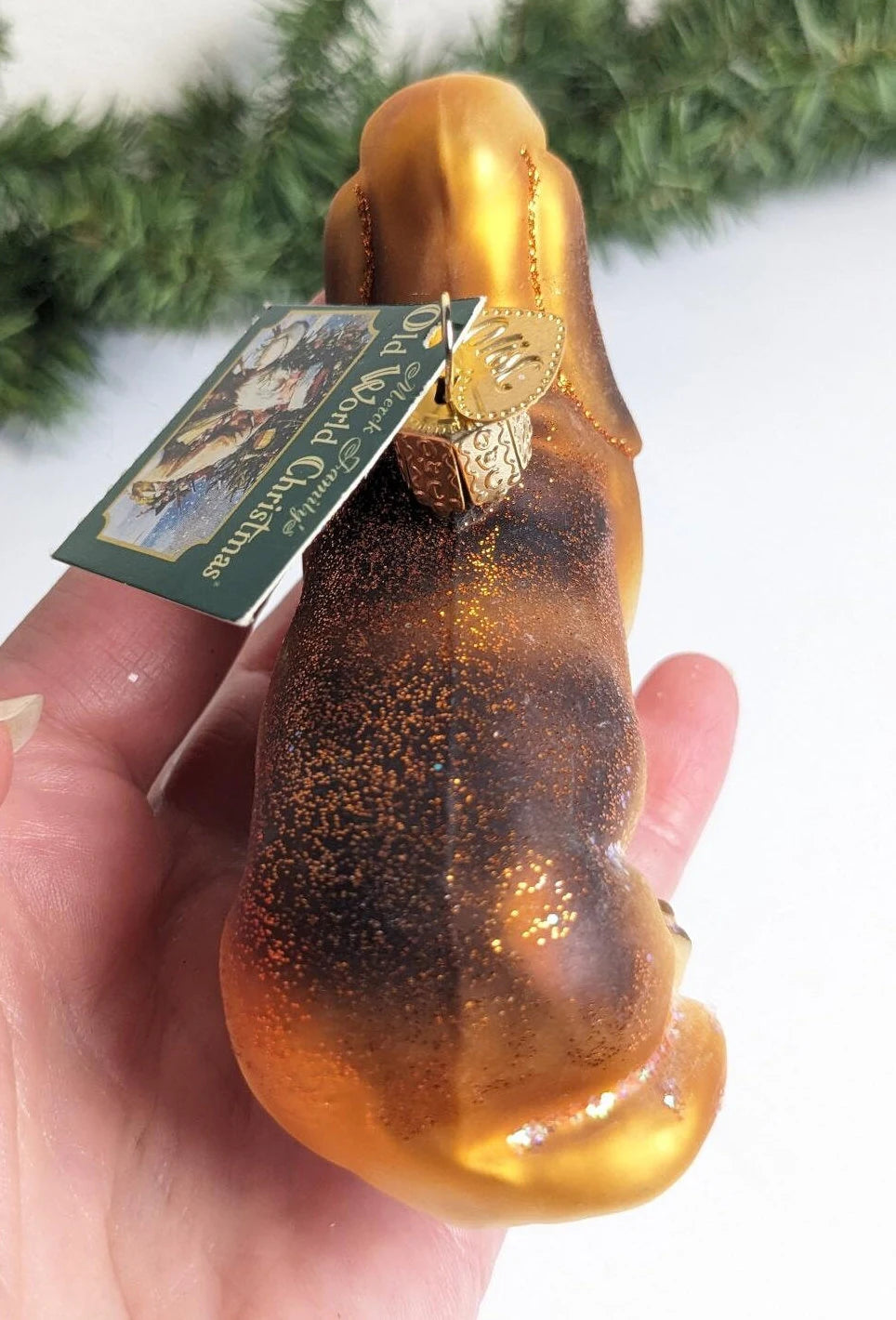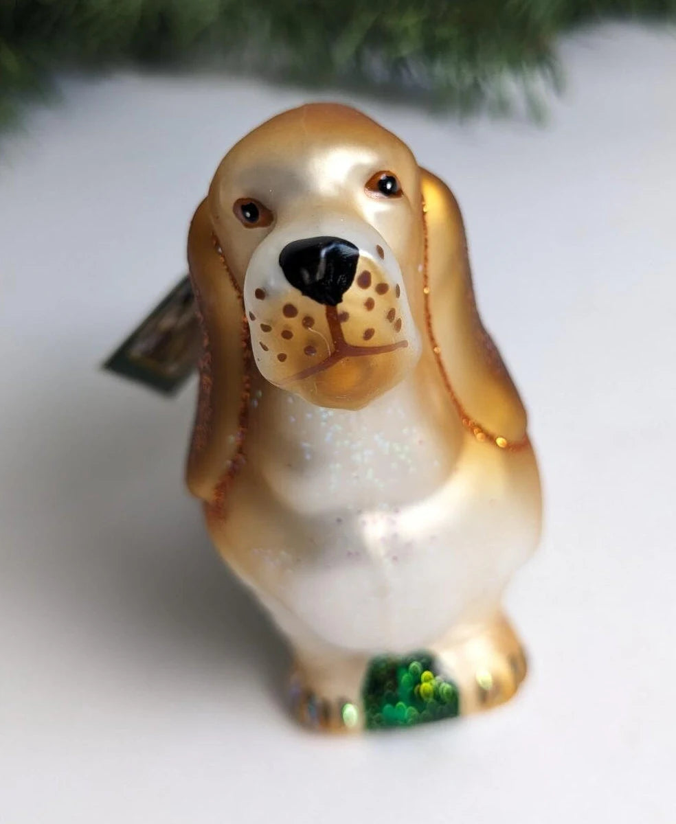 Retired Old World Christmas Begging Basset Glass Christmas Ornament.