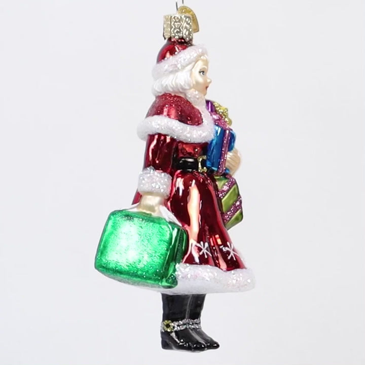 Mrs. Santa Claus Goes Shopping Blown Glass Tree Ornament by Old World Christmas