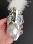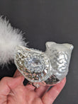 Christopher Radko Silver Owl Glass Clip Christmas Ornament. This is gorgeous! Made of blown glass it has gorgeous blue gem eyes, clear gem accents with a white feather tail, very pretty. Perfect for your tree this holiday season.