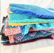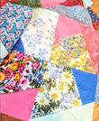 These blocks are 12 inch squares with various fabrics and patterns pre-sewn to make a quilt. Some of the blocks have a black border piece sewn on one edge to make the border of your quilt. This is a great project for people who are new to quilting, as some of the work is already done for you. These could also be turned into throw pillows. Make a quilt with just these squares or add some of your own scrap blocks if desired.