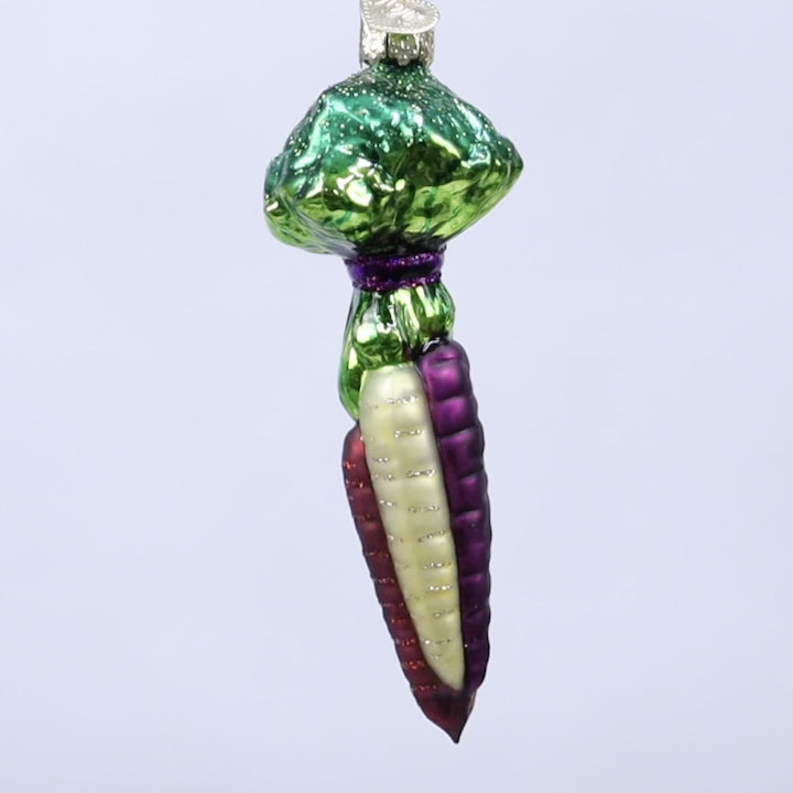 Delicious juicy, crunchy carrots of every color. Rainbow carrots might sound like the creation of a preschooler coloring, but these vegetables are as real as the classic orange carrots. Rainbow carrots brighten a dinner plate, and this ornament will bring brightness, color and a sparkle to a chef, gardener or veggie lovers Christmas tree.