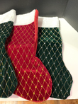 2 red and 2 green elegant Christmas Stockings in a diamond pattern. These are tastefully vibrant dark green and red, and aren't the bright green and red.