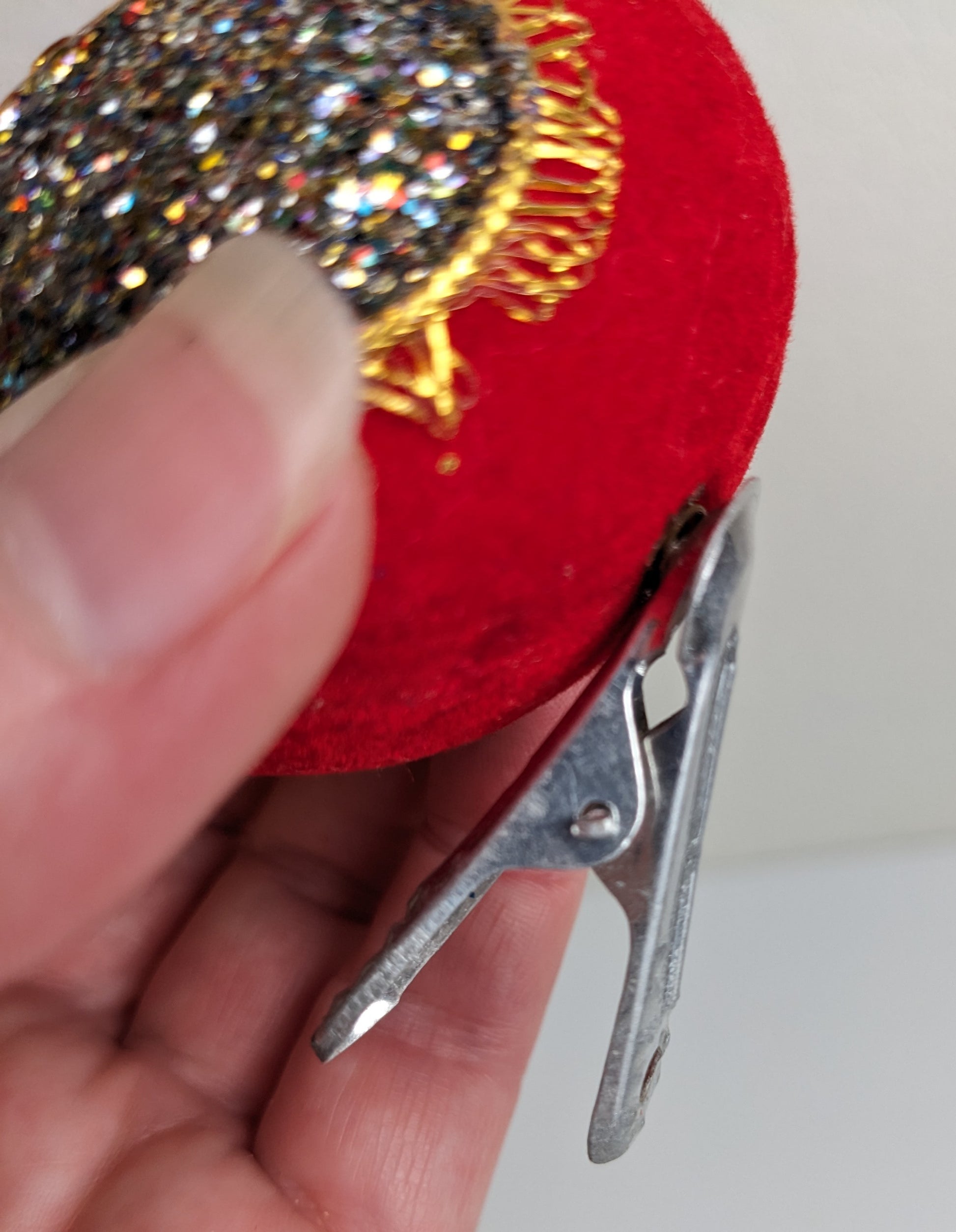 Gorgeous set of 2 Red Bird Clip Christmas Ornaments, made in Japan. These ornaments are artistically crafted with red flocked bodies, multicolored sparkle wings and gold accents, very pretty. They are in excellent condition.