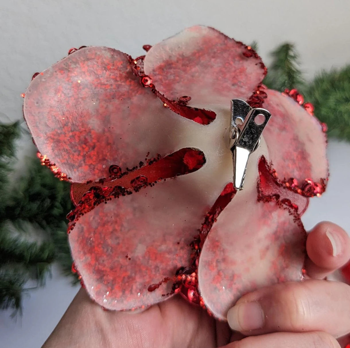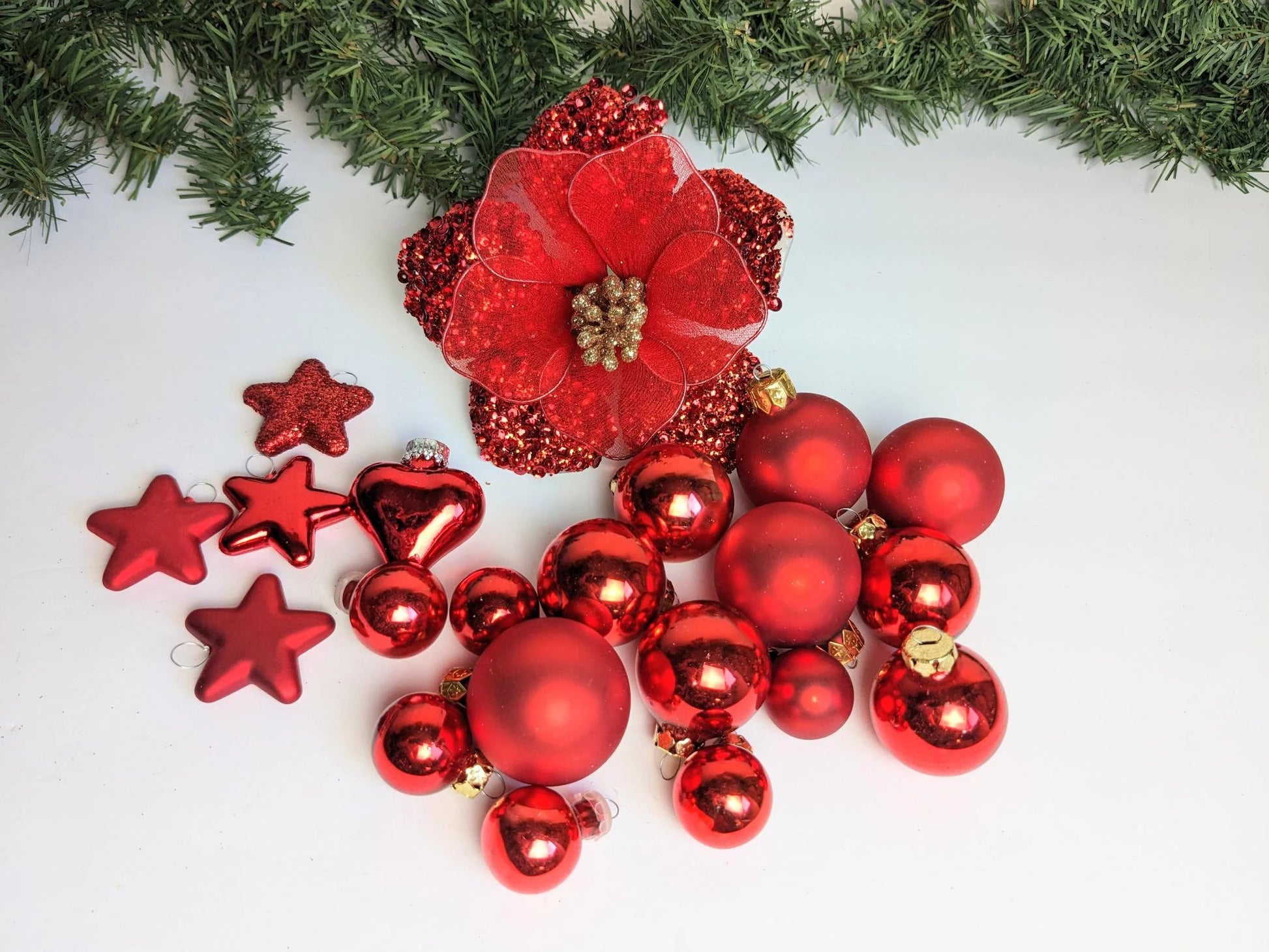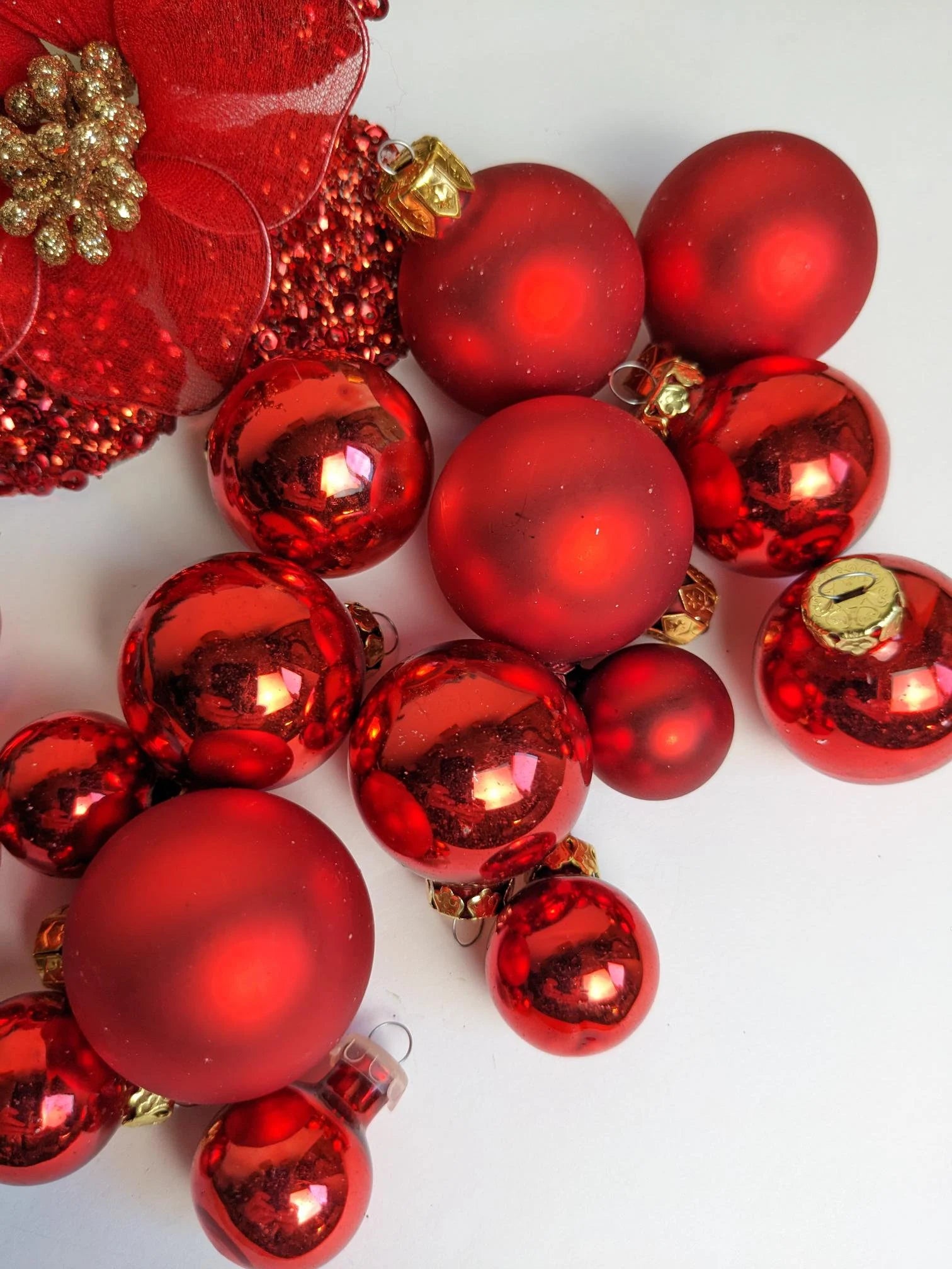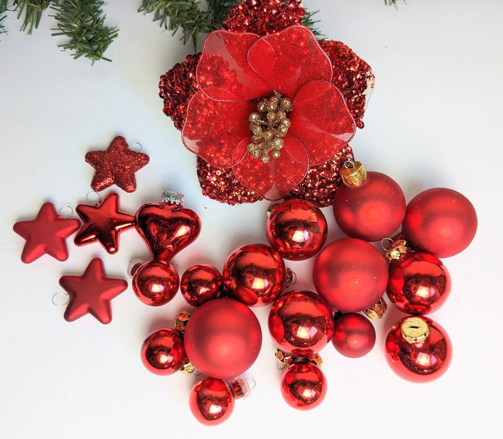 Red Christmas Ornaments with Red Poinsettia Clip Ornament