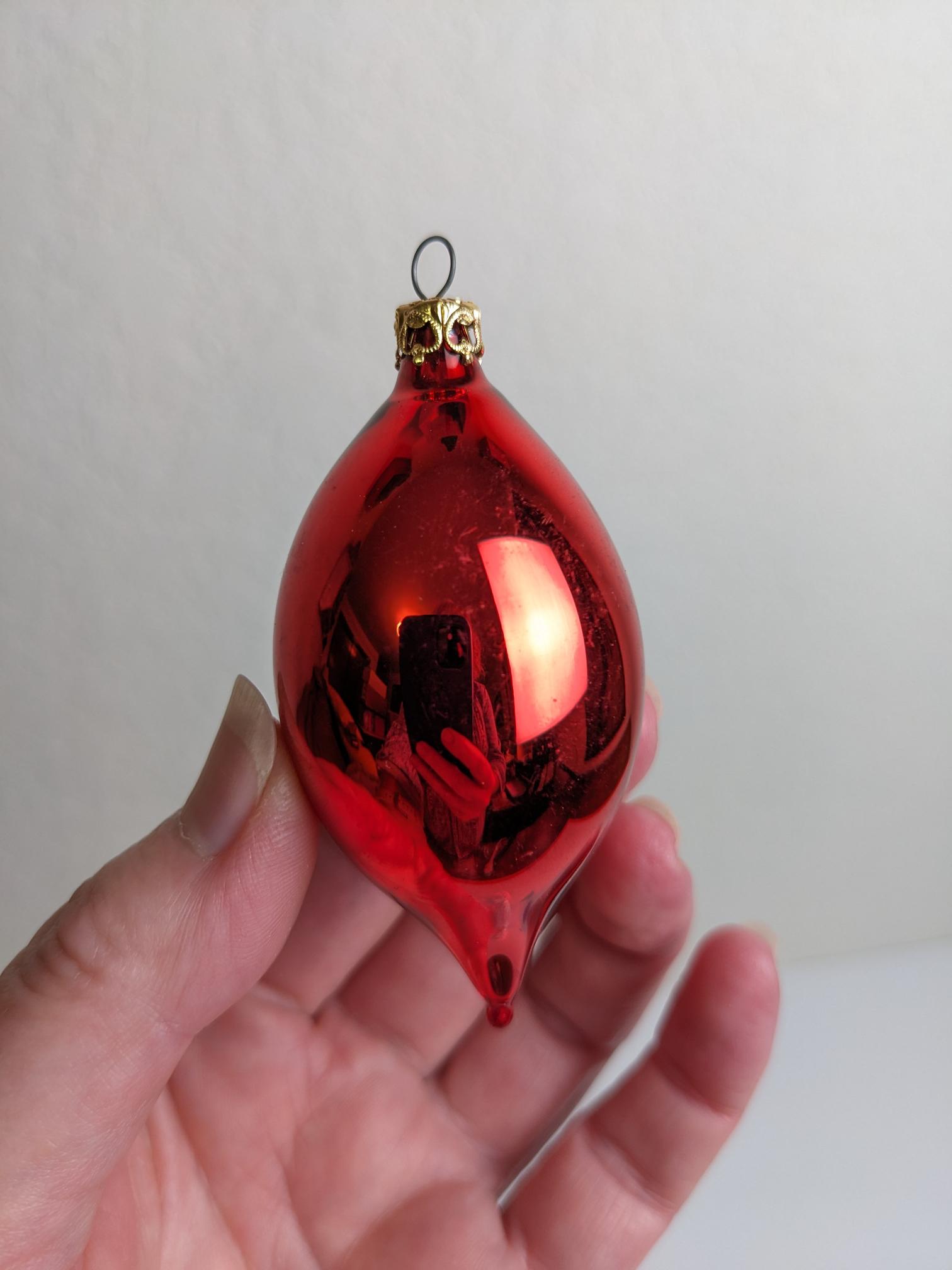 Vintage set of 6 Red Glass Christmas Ornaments. These are absolutely gorgeous. Great set of red ornaments in various finishes and sizes. Measuring from 1 1/4" to 4 1/2".
